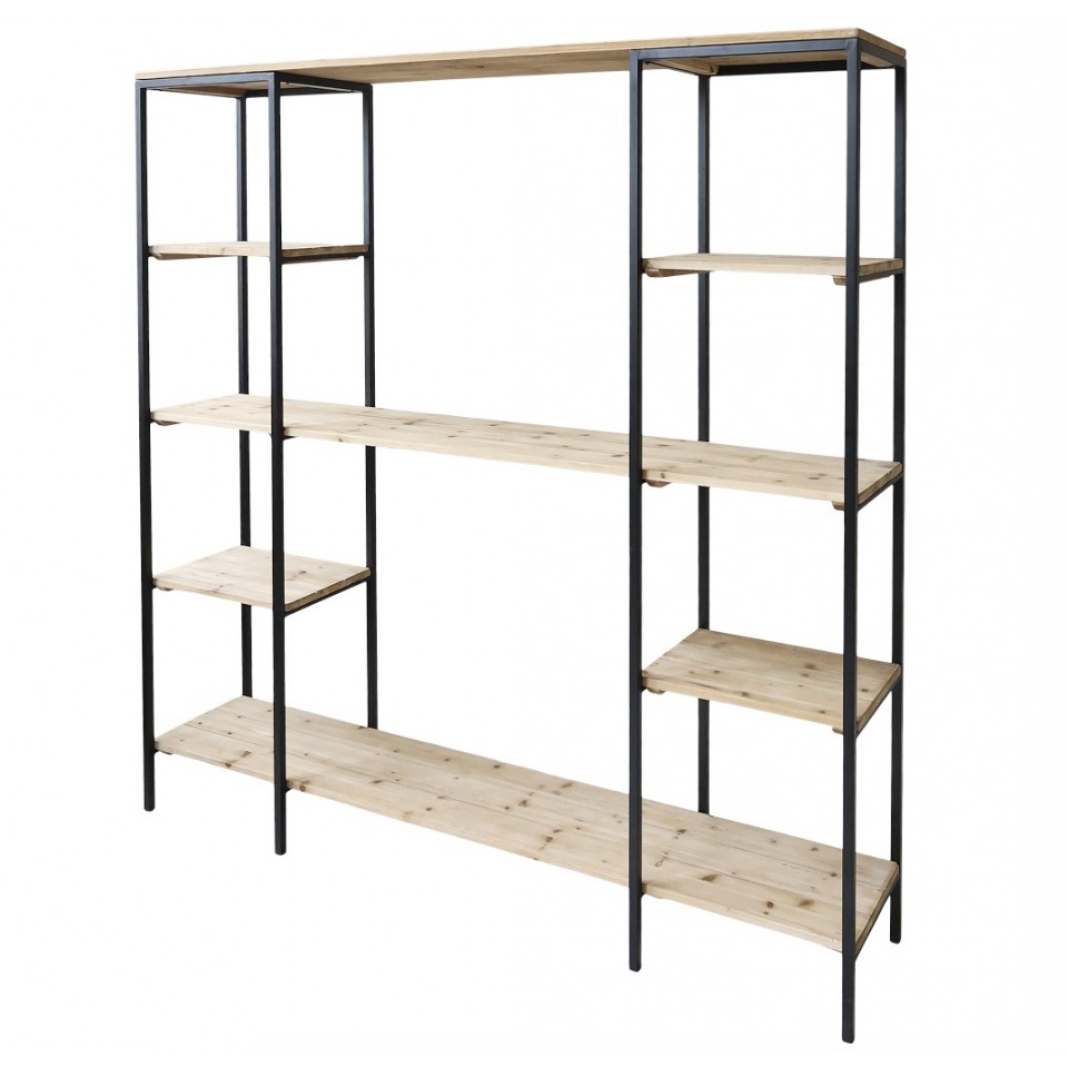 Duży regał loft Vence Chic Antique, o imponujących rozmiarach, to połączenie solidnej metalowej konstrukcji z funkcjonalnością i przestrzenią.