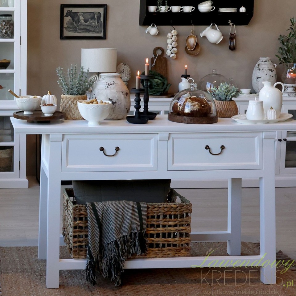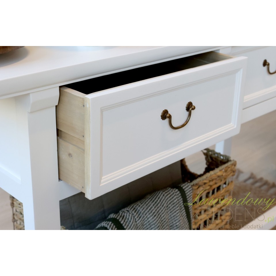Konsola Chic Antique Marsylia świetnie sprawdzi się w przedpokoju, gdzie może służyć jako miejsce na klucze, listy i dekoracyjne dodatki, takie jak wazon z kwiatami czy stylowa lampa. W salonie stanie się eleganckim elementem aranżacji, idealnym do eksponowania ulubionych zdjęć w ramkach, świec czy książek. W sypialni natomiast doda wnętrzu uroku, pełniąc funkcję subtelnej toaletki, wystarczy uzupełnić ją lustrem i odpowiednimi dodatkami.