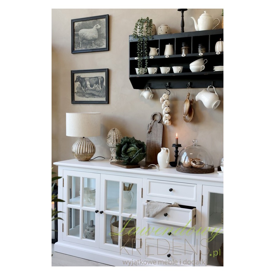 Komoda Marsylia doskonale wpisuje się w aranżacje inspirowane stylem prowansalskim, w których dominują jasne barwy i naturalne materiały. W skandynawskich wnętrzach może pełnić rolę subtelnego akcentu, który doda przestrzeni ciepła i przytulności. Jej przeszklone szafki są idealne do przechowywania zastawy stołowej w jadalni lub kolekcji książek w salonie, a szuflady sprawdzą się do organizacji drobnych przedmiotów.