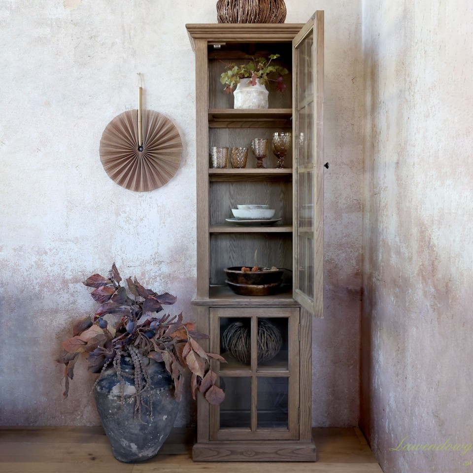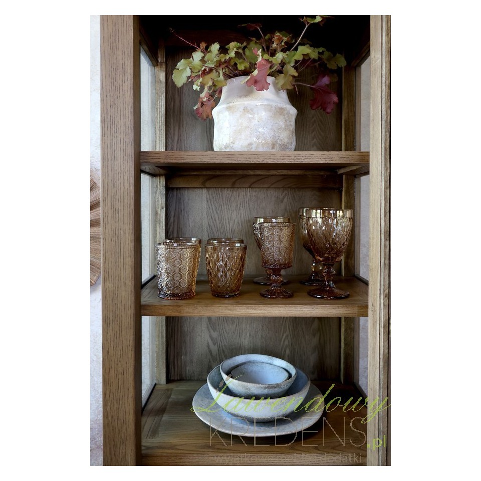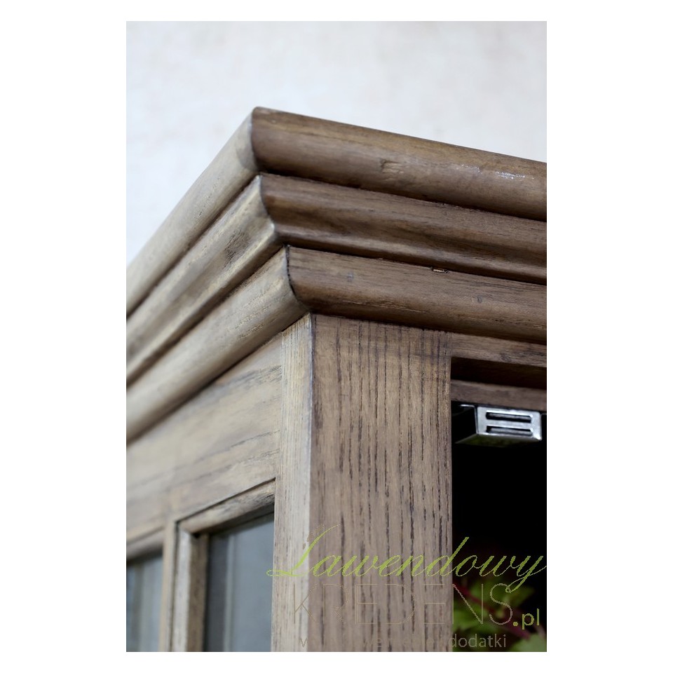 Mebel ten będzie doskonałym uzupełnieniem salonu, jadalni czy kuchni. W aranżacji prowansalskiej witrynę można zestawić z białymi lub pastelowymi meblami oraz dekoracjami inspirowanymi naturą, takimi jak wiklina czy ceramika. W bardziej rustykalnym wnętrzu pięknie skomponuje się z dodatkami z surowego drewna, lnu i suszonych kwiatów. Z kolei w stylu skandynawskim witryna będzie idealnym akcentem podkreślającym naturalne materiały i subtelne barwy.