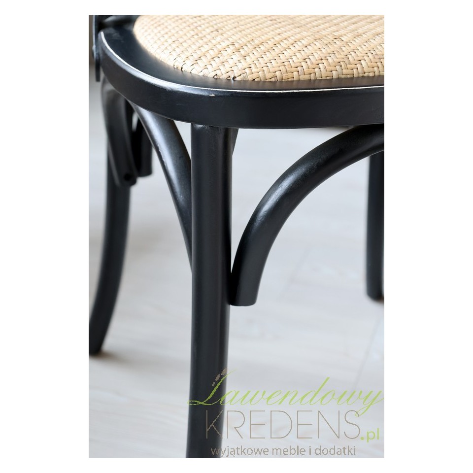 To wyjątkowe krzesło od duńskiej marki Chic Antique łączy w sobie lekkość konstrukcji z silnym akcentem dekoracyjnym. Wykonane z drewna kauczukowego w głębokim, matowym odcieniu czerni i wykończone siedziskiem z naturalnego rattanu, zachwyca prostotą, jakością i uniwersalnym designem. Charakterystyczny krzyżak w oparciu dodaje mu lekkości oraz subtelnego retro charakteru.