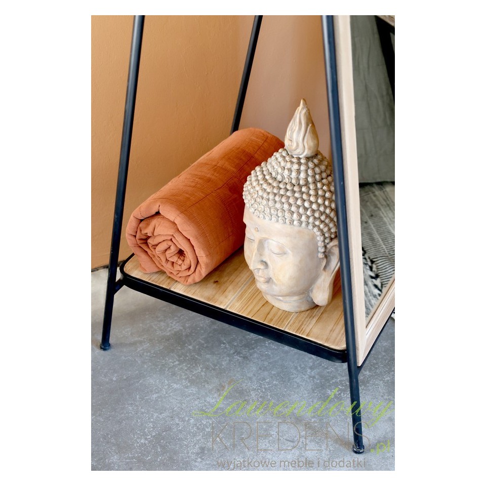 To nie tylko ozdoba – lustro ma stabilną podstawę i wygodne podparcie, dzięki czemu nie wymaga montażu do ściany. Można je swobodnie przestawiać w zależności od potrzeb aranżacyjnych. Sprawdzi się zarówno w lofcie, jak i w klimatycznym mieszkaniu w stylu boho lub rustykalnym. Można je wykorzystać jako element garderoby, kącika do makijażu albo akcent przy wejściu do domu.