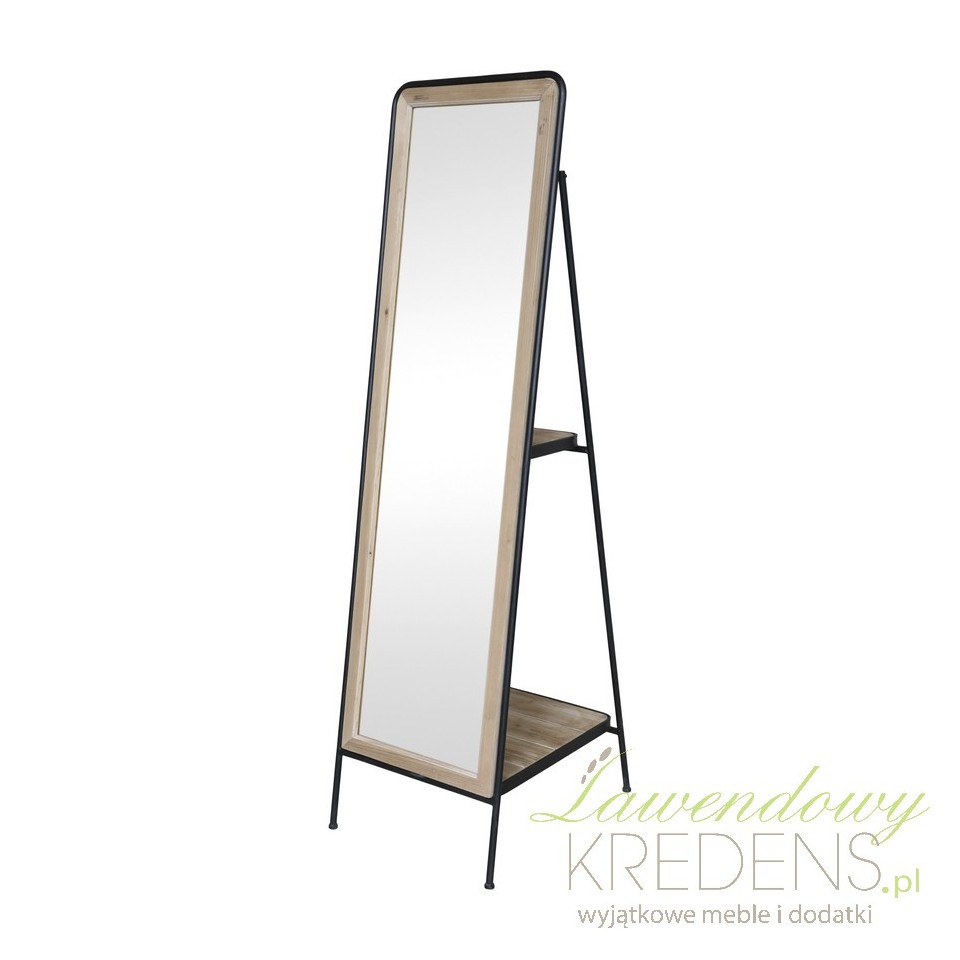 Lustro Podłogowe z Półkami Chic Antique to wyjątkowy mebel, który łączy funkcję praktyczną z dekoracyjną. Dzięki industrialnemu charakterowi i eleganckiej formie, doskonale sprawdzi się zarówno w przedpokoju, sypialni, jak i garderobie.