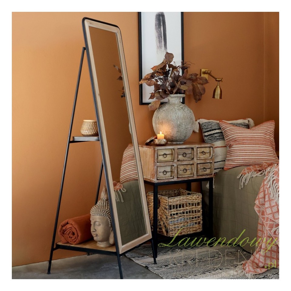 Lustro Podłogowe z Półkami Chic Antique to mebel zaprojektowany z dbałością o detale. Wysoka jakość wykonania oraz połączenie trwałych materiałów sprawiają, że będzie służyć przez wiele lat. Idealnie komponuje się z innymi elementami wyposażenia w stylu industrialnym, vintage czy boho – zarówno drewnianymi szafkami, metalowymi konsolami, jak i naturalnymi dodatkami z rattanu czy lnu.