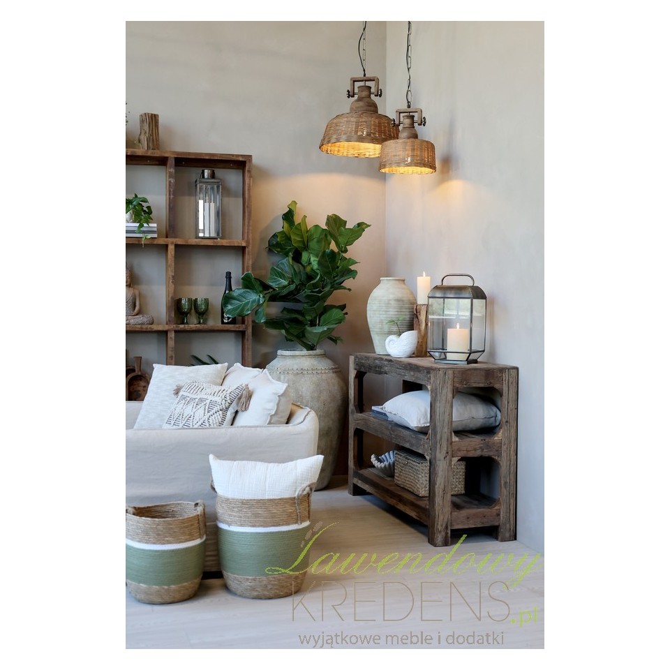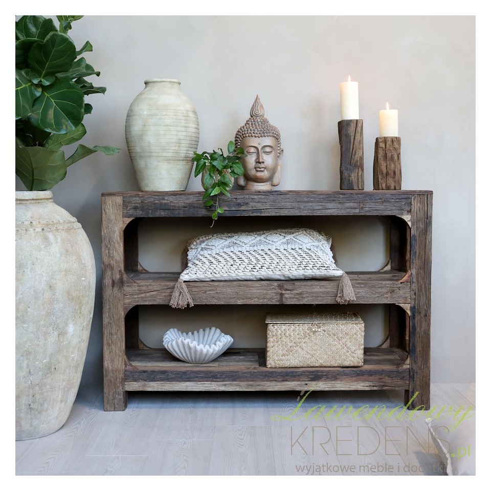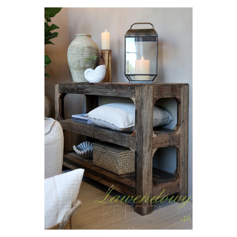 Drewniana konsola Chic Antique to wyjątkowy mebel wykonany z drewna z recyklingu, łączący styl vintage z funkcjonalnością. Jej prosty, a zarazem subtelny design sprawia, że doskonale wpisuje się w różnorodne aranżacje wnętrz.