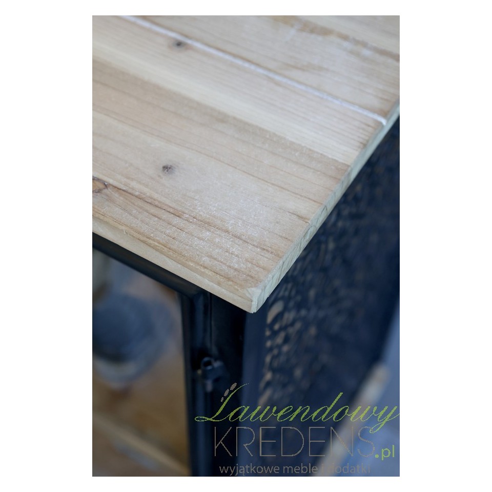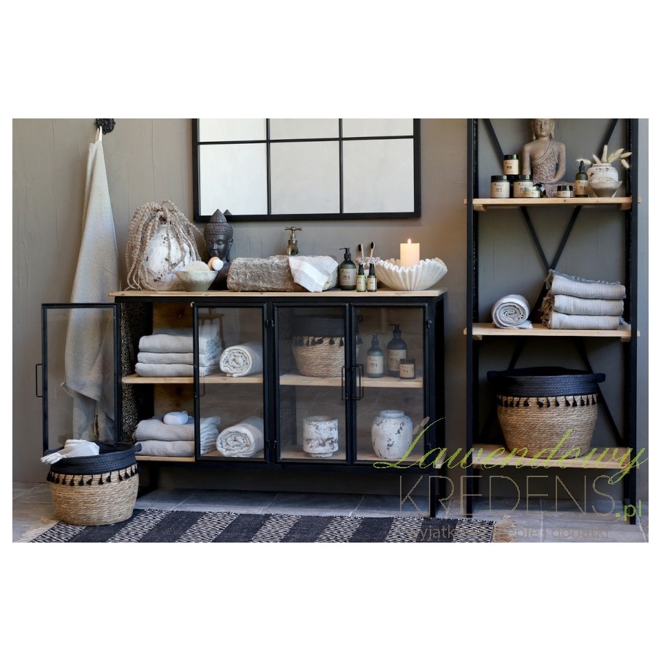 Drewniane półki w naturalnym odcieniu jodły ocieplają całość i wprowadzają równowagę do surowej, metalowej ramy. To właśnie kontrast pomiędzy ciepłem drewna a chłodem metalu sprawia, że komoda Vence tak doskonale oddaje klimat nowoczesnych, industrialnych przestrzeni. Może stanowić doskonałą bazę pod kolekcję świec, kosmetyków w szklanych butelkach, naturalnych glinek, dekoracyjnych słoików lub ręczników zwiniętych w równe rulony.