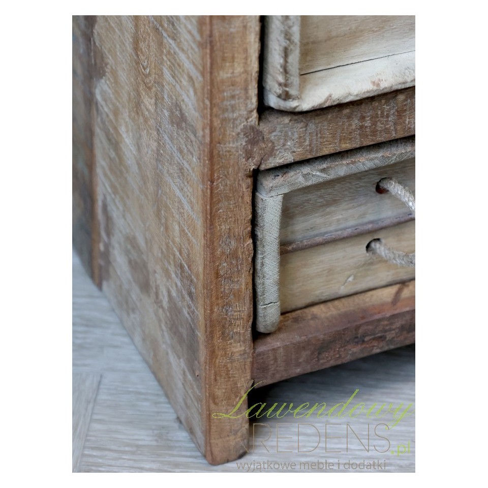 Rustykalna szafka z kolekcji Grimaud Chic Antique wykonana ze starego drewna zachwyca unikalnymi szufladami z dawnych form ceglanych. Dziesięć szuflad i solidna konstrukcja nadają jej charakter i duszę.