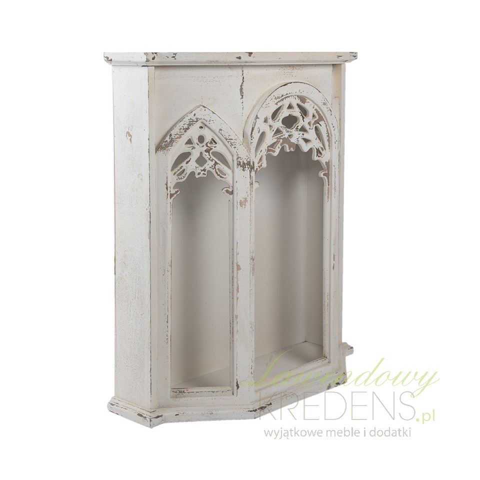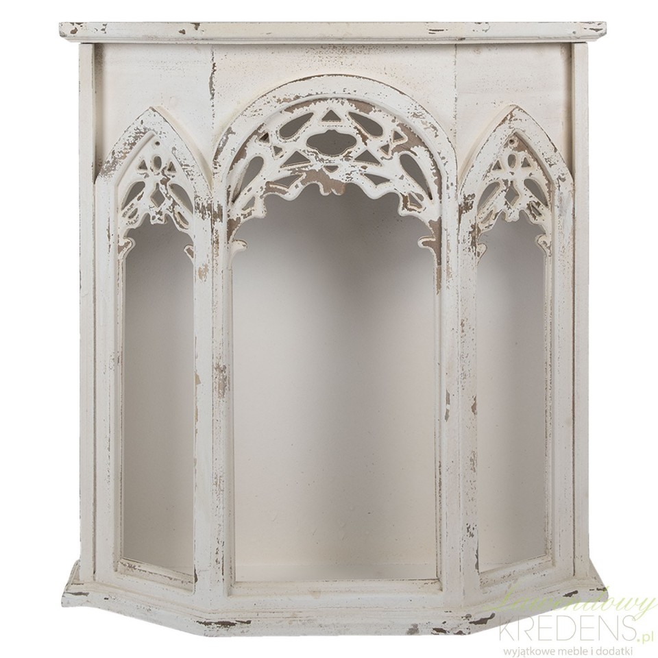 Szafka ścienna Clayre & Eef to kwintesencja stylu prowansalskiego i shabby chic. Wykonana z drewna w kremowym kolorze, zachwyca przetarciami i ozdobnymi łukami. Doskonale sprawdzi się w salonie, sypialni lub przedpokoju, wprowadzając romantyczny klimat francuskiej wsi i ponadczasową elegancję vintage.