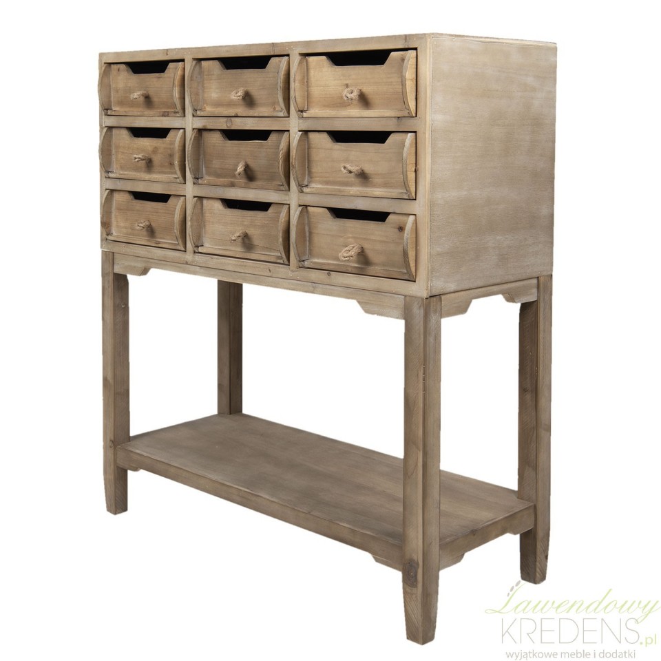 Zamów meble w stylu prowansalskim i wprowadź ducha historii do swojego domu. Należy dodać, że meble takie jak komody w stylu prowansalskim to doskonały sposób na schludne i zorganizowane przechowywanie rozmaitych przedmiotów. Prezentowana komoda w stylu prowansalskim aptekarska z dziewięcioma szufladkami urozmaici Twoje wnętrze, cudownie komponując się z innymi meblami z drewna i nie tylko. W Clayre & Eef dbają o to, aby nasi klienci mogli cieszyć się elementami wyposażenia wnętrza najwyższej jakości.
