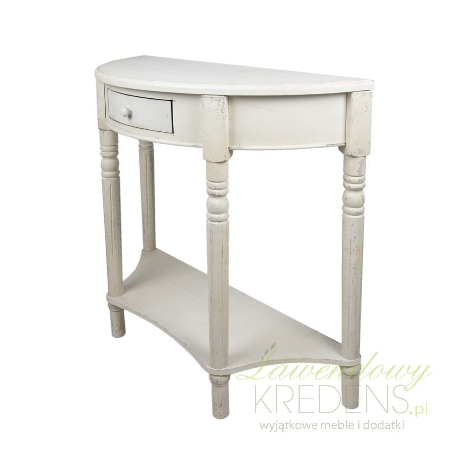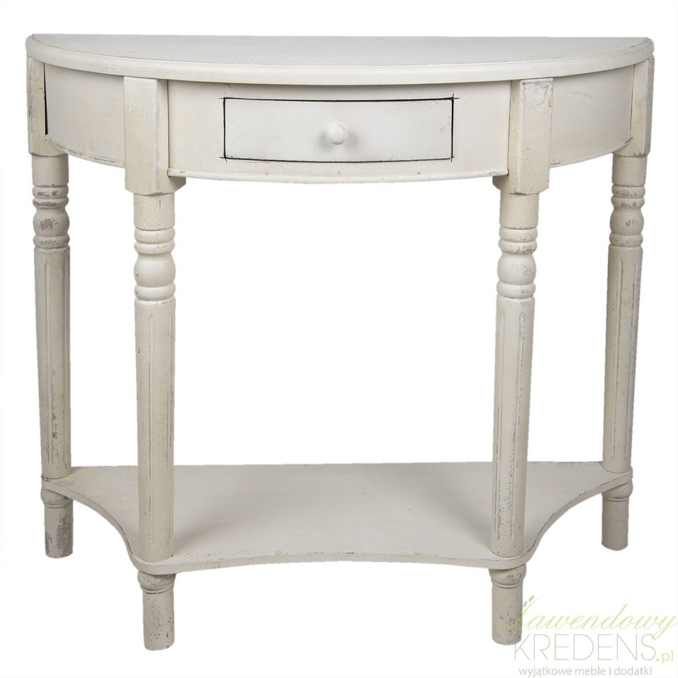 Konsola prowansalska półokrągła od Clayre & Eef z wrzecionowatymi nogami wniesie do Twojego domu ponadczasowy, klasyczny design.