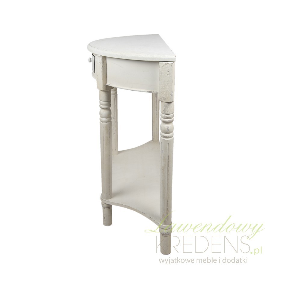 Prezentowana konsola prowansalska półokrągła została wykonana z drewna, co zapewnia jej długowieczność i nieprzeciętną wytrzymałość. Umieszczona pod blatem szufladka to idealny schowek na drobiazgi. Konsole w stylu prowansalskim są dostępne w naszym sklepie w kilku wykończeniach kolorystycznych, dzięki czemu z łatwością znajdziesz u nas nieprzeciętne, prowansalskie meble do swojej aranżacji. Oferujemy konsole prowansalskie w odcieniach brązu, szarości, beżu, kremu i nie tylko!