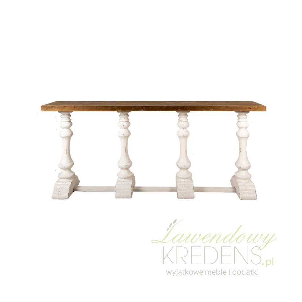 Konsola w stylu prowansalskim postarzana Clayre & Eef jest przepiękna i stanowi atrakcyjny element wystroju, który będzie pasował do wielu pomieszczeń. Drewniana konsola z białymi nogami rzeźbionymi i brązowym, podłużnym blatem wygląda najlepiej ustawiona przy ścianie. Na blacie możesz wyeksponować mnóstwo przedmiotów, lub pozostawić go niezagospodarowanym, a jedynie zawiesić nad konsolą lustro lub ciekawy obraz. Postarzane meble takie jak konsole prowansalskie zapewnią wnętrzom mnóstwo radości przez długie lata!