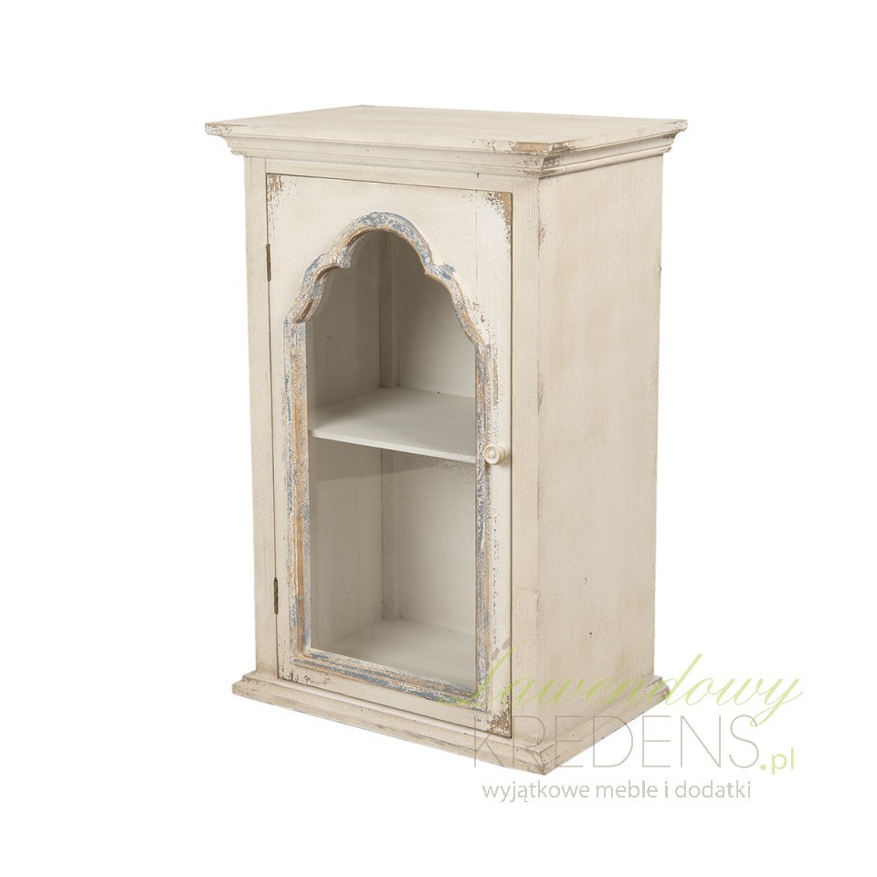 Szafka ścienna prowansalska kremowa dzięki przeszklonym drzwiom sprawi, że już nigdy nie będziesz tracić czasu na polowanie na nieuchwytny przedmiot. Użyj jej jako szafki na klucze w przedpokoju, na porcelanę w kuchni lub na kosmetyki w łazience. Szafka z postarzeniami i półką wewnątrz jest wykonana w kolorze kremowym i mierzy 85 cm wysokości. Stworzona z miłości do uporządkowanych i stylowych wnętrz będzie wyglądać dostojnie w każdym pomieszczeniu. Interesują Cię meble prowansalskie? Zobacz wszystkie już teraz na naszej stronie!