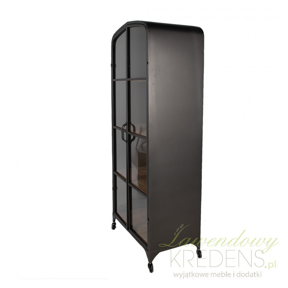 Duża witryna w stylu industrialnym Clayre & Eef - doskonałe połączenie surowości i elegancji, które doda wyjątkowego charakteru Twojemu wnętrzu. Ta czarna witryna jest nie tylko praktycznym meblem do przechowywania, ale również pięknym elementem dekoracyjnym, który przyciąga wzrok i tworzy unikalny styl pomieszczenia.
