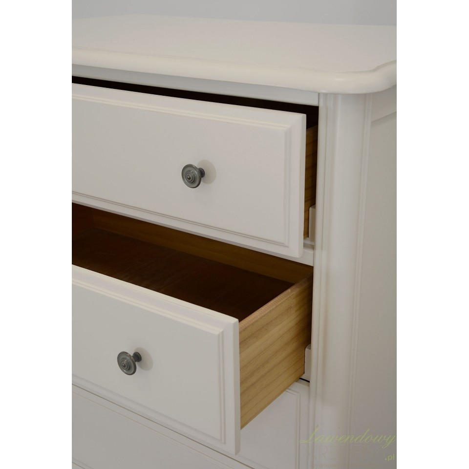 Komoda w stylu prowansalskim Dijon posiada sześć jednakowej wielkości szufladek, które dla Twojego komfortu zostały wyposażone w podwójne uchwyty.