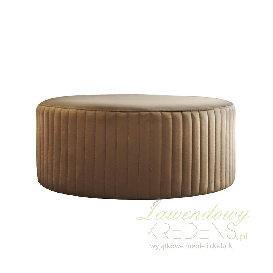 Pufa welurowa Caramel o średnicy 85 centymetrów w ostatnim czasie zajmuje pierwsze miejsce w rankingu mebli najchętniej wybieranych do wyposażenia salonu.