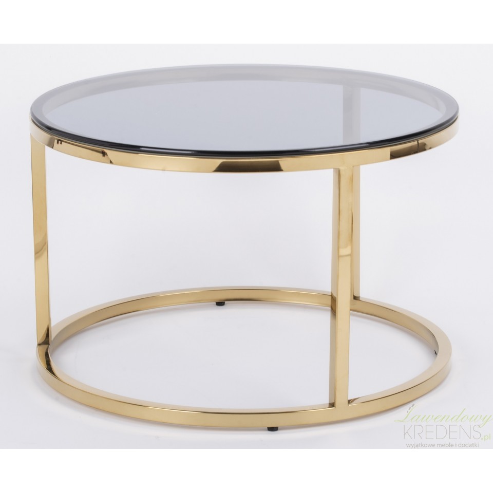 Zaprojektowany dla luksusowego, współczesnego domu, ten złoty stolik kawowy Glamour Gold Grey ma okrągły blat o średnicy 60 centymetrów.