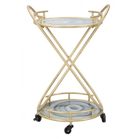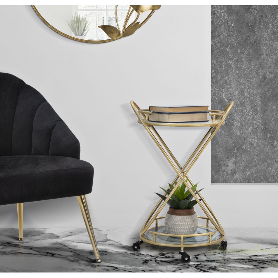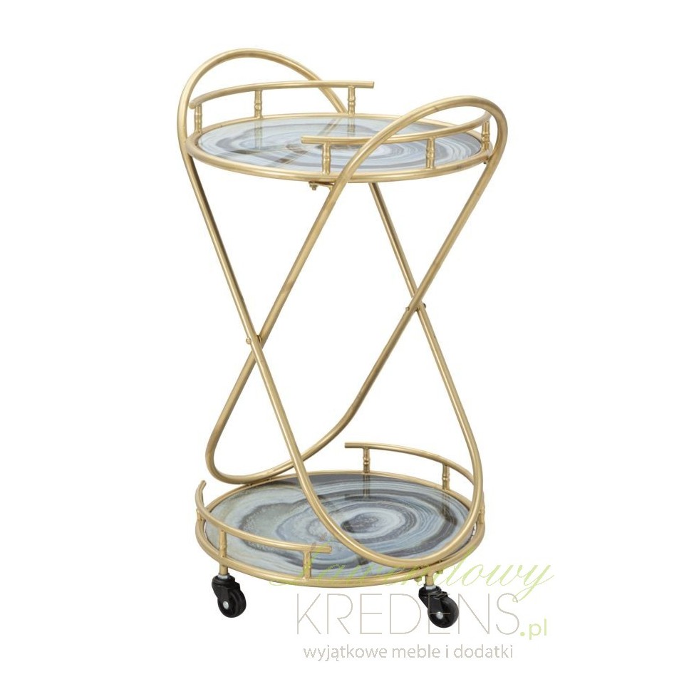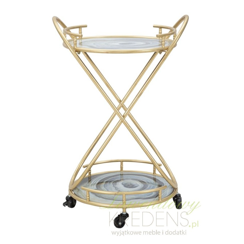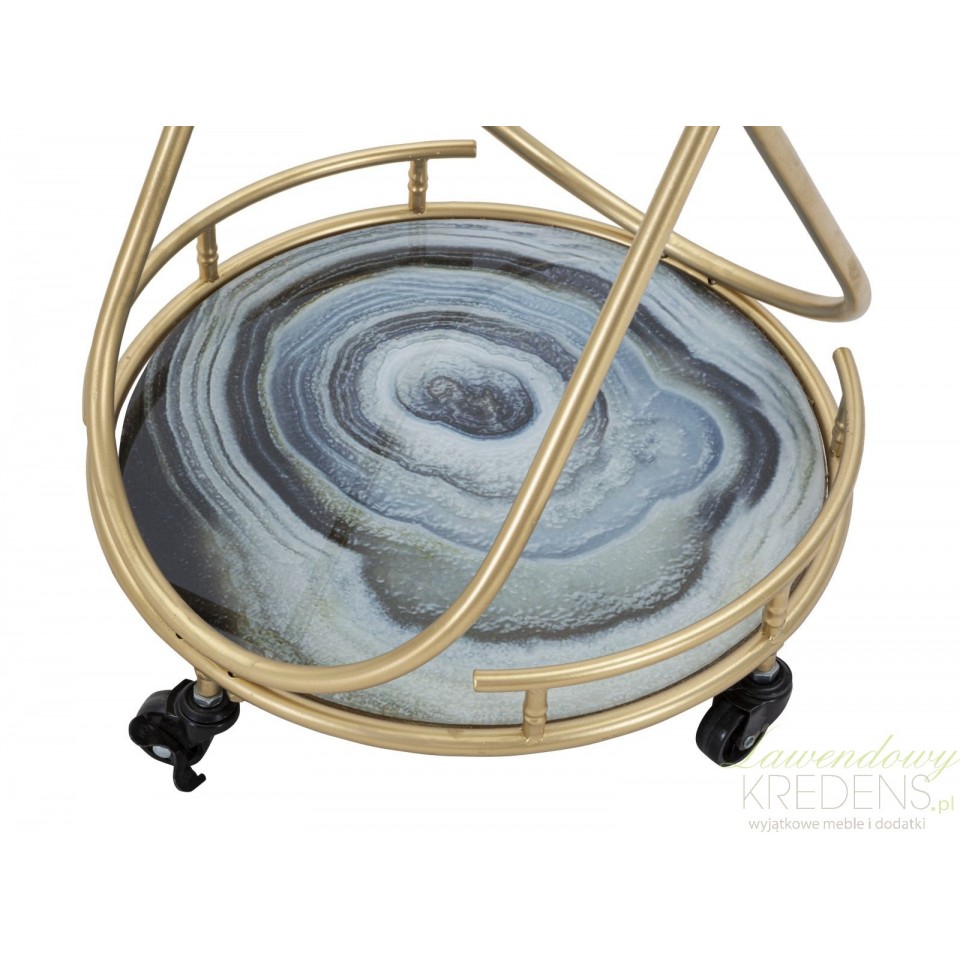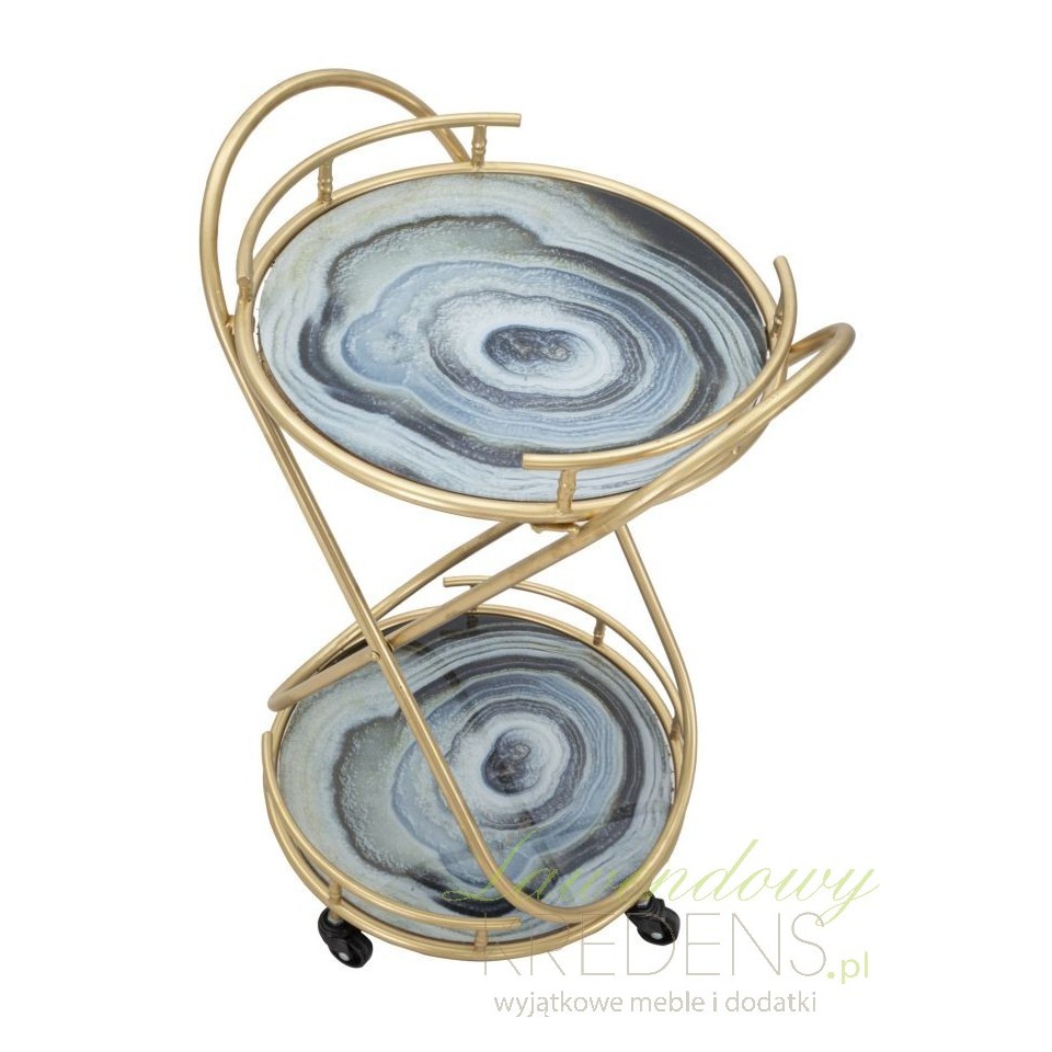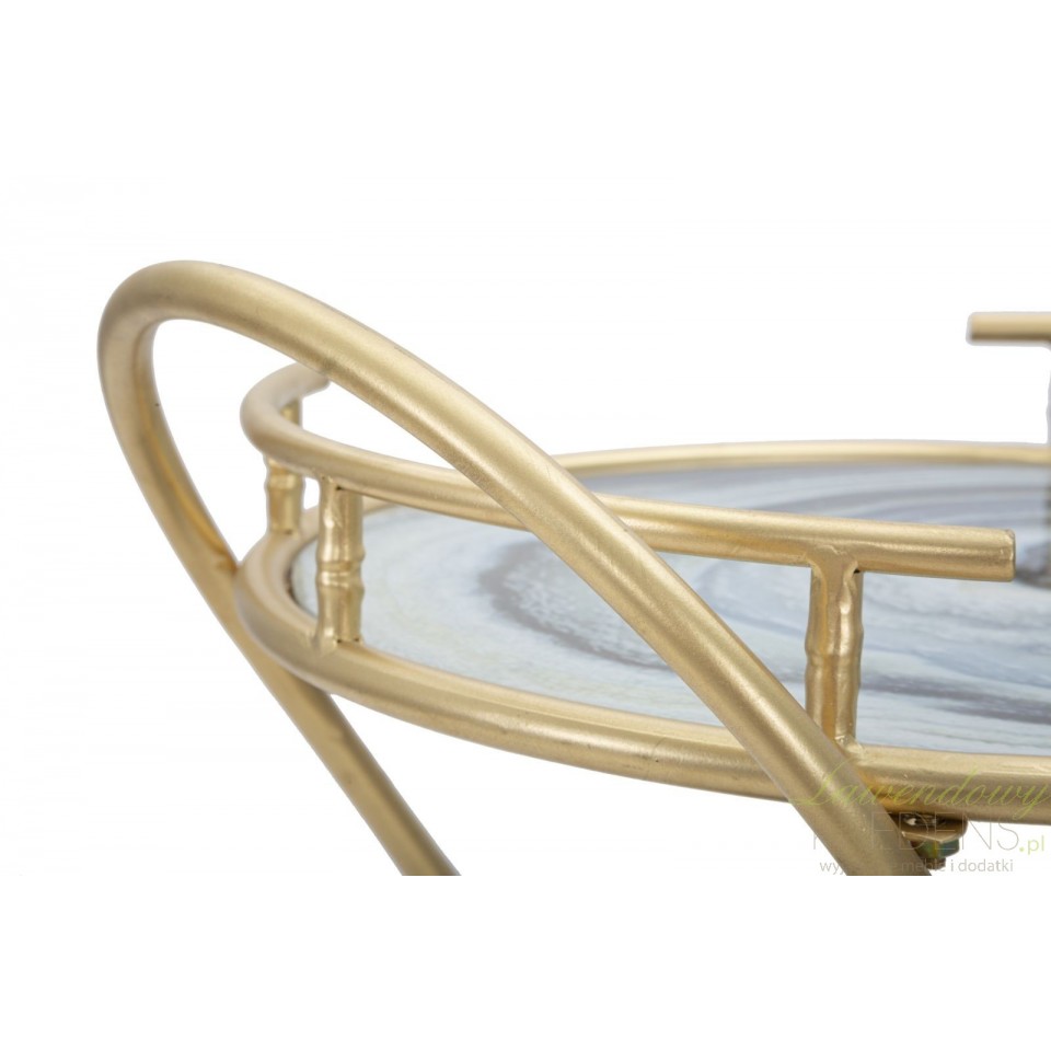 Przedstawiamy metalowe stoliki glamour. Oto stolik glamour na kółkach Roundy - to dzieło projektantów Mauro Ferretti. Mebel składa się z dwóch blatów z efektem niebieskiego marmuru oraz z konstrukcji z metalu w kolorze złota. Mebel cechuje luksusowy wygląd, który sprawia, że jest to prawdziwy element dekoracyjny (jak również bardzo praktyczny)! Zamów stoliki w stylu glamour by cieszyć się wspaniałymi chwilami. Meble glamour to elementy wyposażenia wnętrza, które pokochają wszyscy!