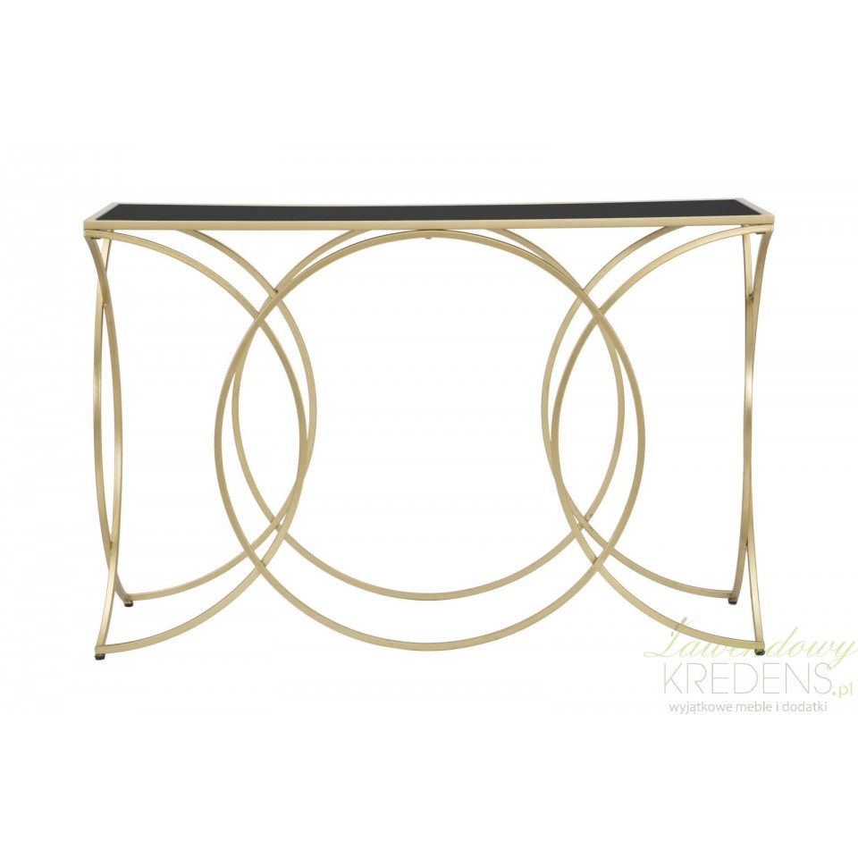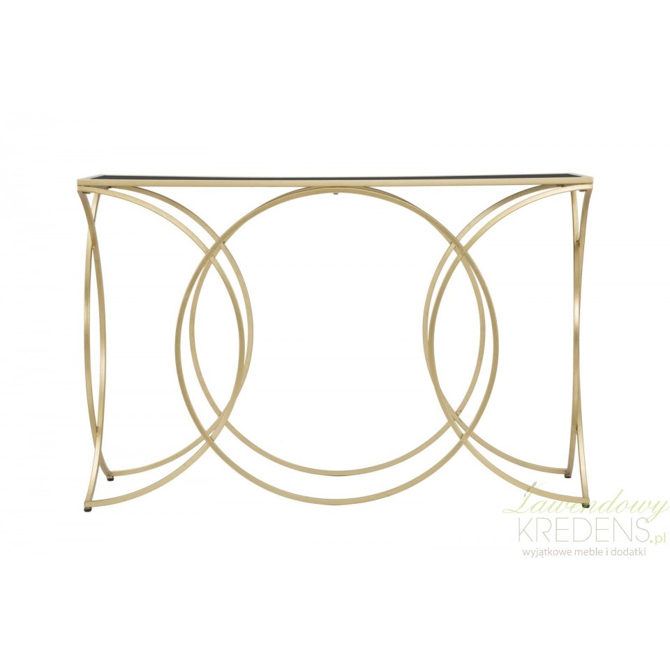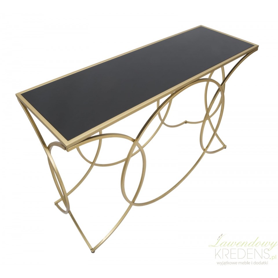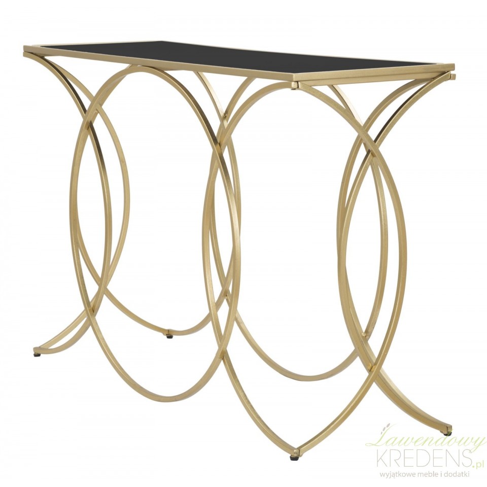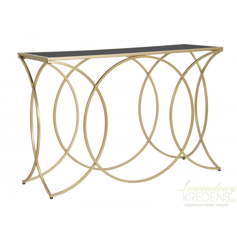 Nasza konsola Glamour Infinity Mauro Ferretti wykonana jest ze szkła i metalu w kolorze złotym i czarnym. Mierzy 79 cm wysokości.