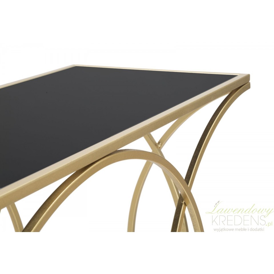 Wzorowana na francuskich meblach konsola Glamour Infinity łączy metalową ramę w kolorze złotym z czarnym blatem, aby uzyskać elegancki styl. Jak wystylizować ten elegancki mebel? To proste - wystarczy ustawić na blacie wazon ze świeżymi kwiatami, mały świecznik lub dekoracyjną tacę. Meble w stylu glamour od Mauro Ferretti mają swój niepowtarzalny charakter, który pasuje w każdym stylu wystroju sypialni, od shabby chic po nowoczesne. Świetna do ustawienia przy łóżku, przy sofie lub w dowolnym zakątku domu, który potrzebuje urozmaicenia – ta konsola jest niezastąpiona!
