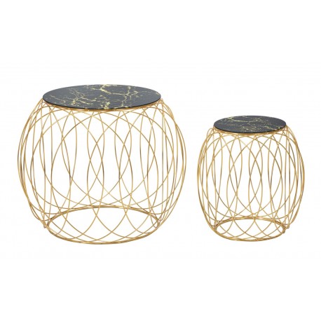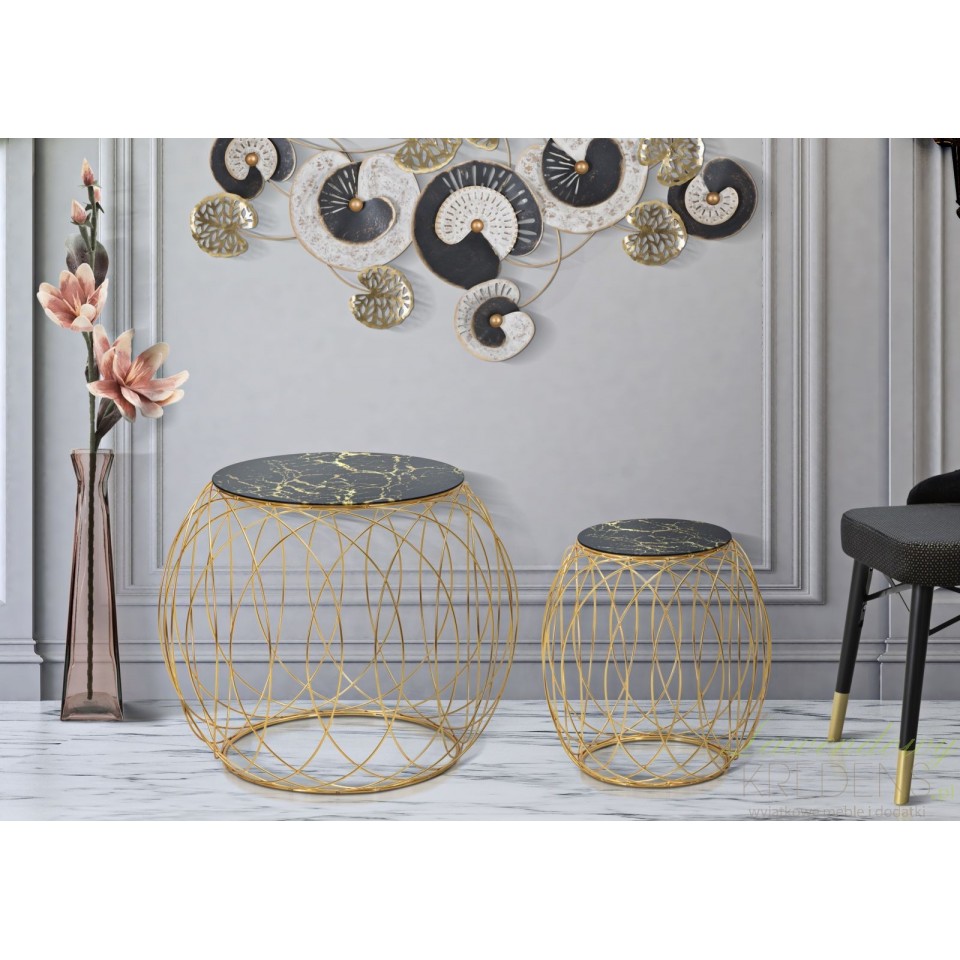 Wykonane z metalu i szkła w eleganckiej kolorystyce, złote stoliki metalowe Ball mają marmurkowe blaty okrągłe. Stanowią praktyczne miejsce do przechowywania i są pełne współczesnego stylu. Wystylizuj okrągły blat za pomocą małego wazonu z ulubionymi kwiatami, aby natychmiast odświeżyć swoją przestrzeń. Spektakularny element wystroju dla Twojego domu - te dwa stoliki z czarnymi blatami zrobią wrażenie w każdym otoczeniu. Podobnie jak wszystkie, złote meble glamour od marki Mauro Ferretti.