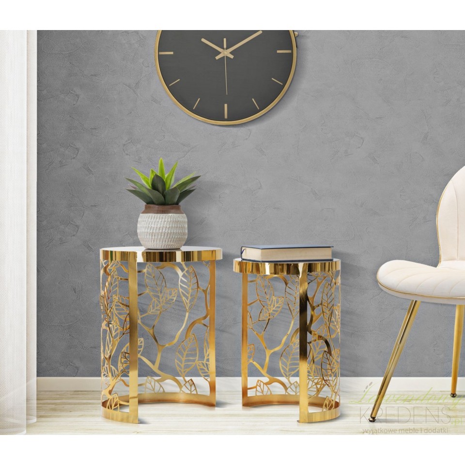 Idealne do dodania odrobiny uniesienia w eleganckiej przestrzeni życiowej - złote stoliki metalowe Leaf, sprawdzą się ustawione przed sofą lub w pobliżu fotela. Dzięki powierzchniom oszałamiającego, połyskującego metalu w kolorze złota nasze okrągłe stoliki mogą okazać się ponadczasowym, luksusowym dodatkiem do każdego, stylowego domu. Blat zapewnia miejsce na tacę z herbatą lub wieczorne drinki. Marka Mauro Ferretti zaprojektowała złote meble glamour aby z radością były wykorzystywane w aranżacjach wnętrz naszych klientów.