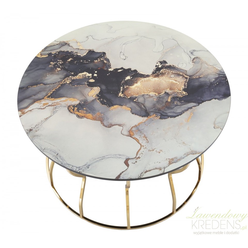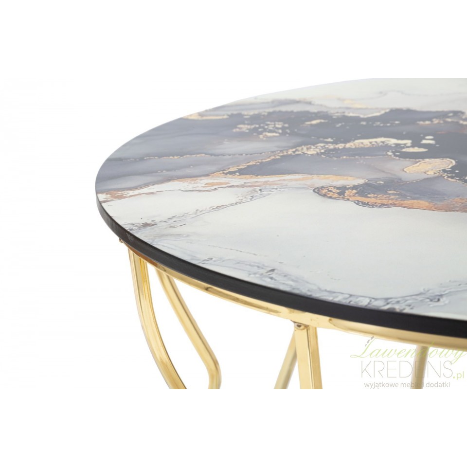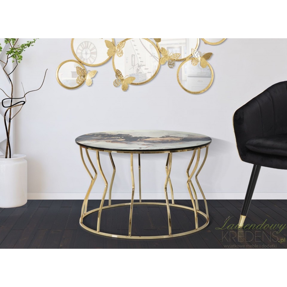 Eleganckie, współczesne wzornictwo - to nie wszystko co ma do zaoferowania marka Mauro Ferretti. Oto złoty stolik kawowy Abstract Top z przepiękną mozaiką na blacie. To mebel wytrzymały i bardzo wszechstronny. Nasz oryginalny stolik kawowy natychmiast odświeży każde pomieszczenie. Dzięki okrągłemu blatowi i podstawie wykonanej z metalu w kolorze złota, łączy w sobie piękno i praktyczność. Złote meble glamour w salonie idealnie nadają się do eksponowania świec zapachowych i filiżanki herbaty.