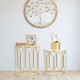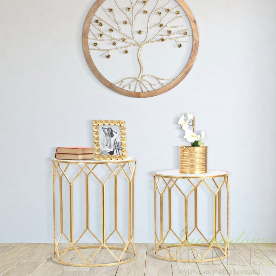 Złote stoliki gold to wizytówka stylu glamour i stylu skandynawskiego. Możesz je wykorzystać jako komplet i ustawić razem obok siebie lub osobno w różnych częściach domu. Komplet stolików jest niezwykle uniwersalny dzięki czemu sprawdzi się tez doskonale jako uzupełnienie wystroju biura.