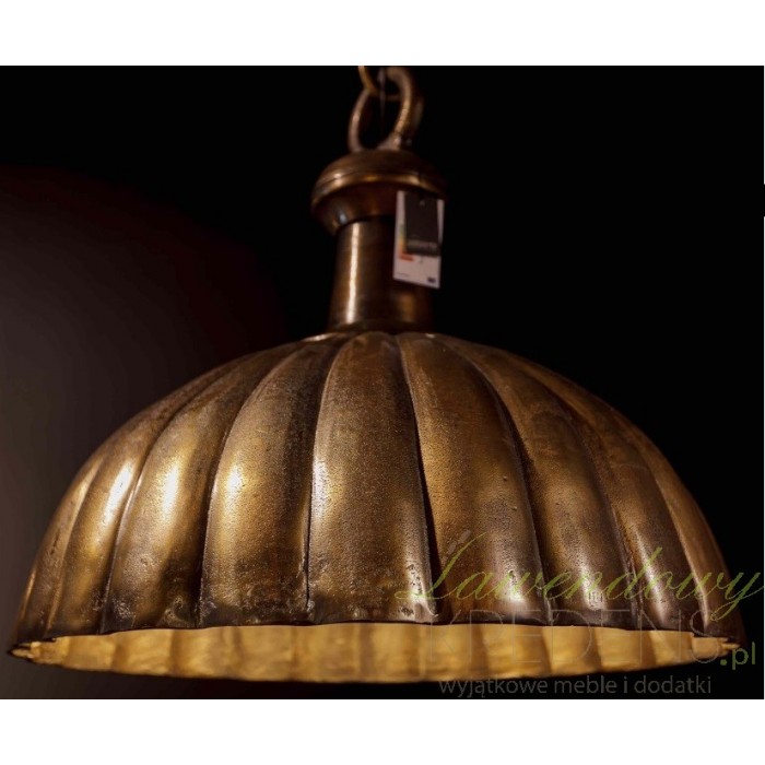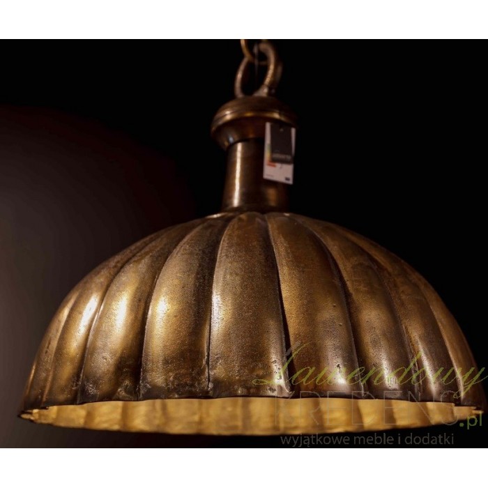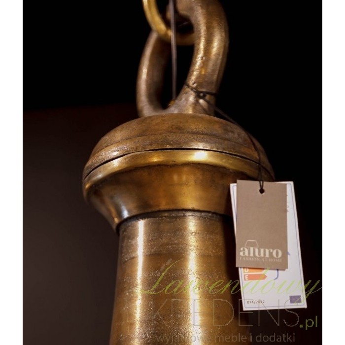 Duża lampa Aluro z metalowym kloszem o falistej fakturze ma kolor antycznego mosiądzu. To stylistyczny miks prostoty z wykończeniem w starym stylu. Wisząca lampa na długim łańcuchu z możliwością regulacji będzie genialnie spełniała swoje funkcje zawieszona nad stołem w jadalni lub nad kuchenną wyspą. Wszystkie lampy ALuro czekają na Ciebie w naszym sklepie - wybierz dla swojego domu tę najpiękniejszą.