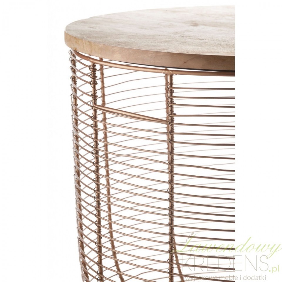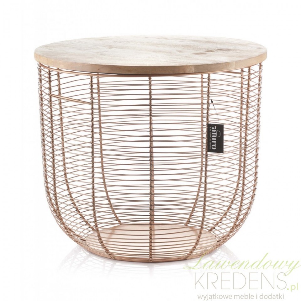 Stolik polskiej firmy Aluro w nietypowym kształcie kosza. Idealny by coś na nim postawić oraz dzięki otwieranej przykrywie świetny jako schowek!