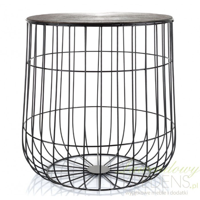 Stolik kosz Aluro o wysokości ponad 50cm może odegrać rolę stolika nocnego lub stolika kawowego ale pięknie będzie wyglądał także jako wolnostojący mebel. Ręcznie malowany na czarny kolor kosz jest okryty miedzianym blatem. Z zestawienia ciemnych barw powstał bardzo funkcjonalny, industrialny mebel. Metalowe meble w ciemnej kolorystyce świetnie odnajdą się w nowoczesnych wnętrzach.