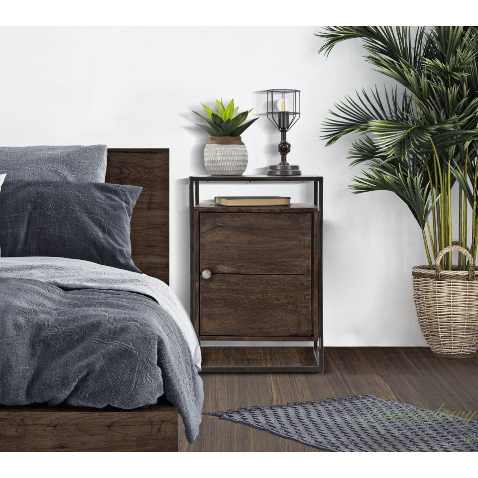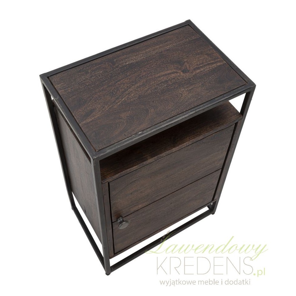 Szafka nocna loft Burn pomoże Ci stworzyć ekspozycję inspirowaną epoką industrialną dzięki ciemnej kolorystyce i prostej konstrukcji.