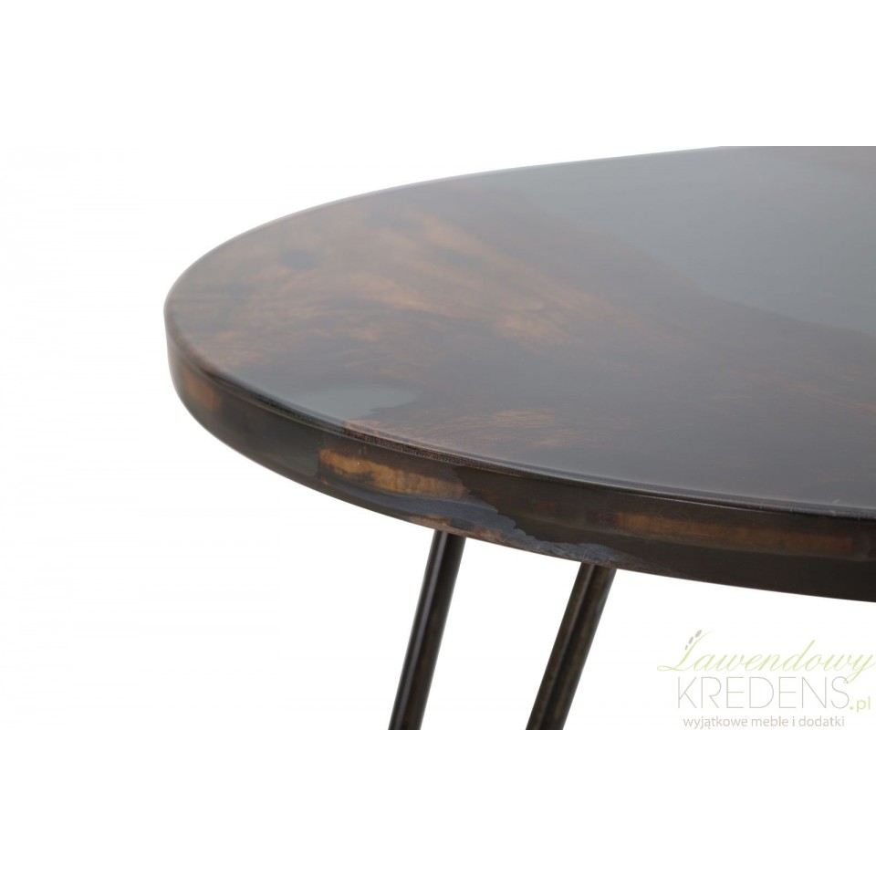 Wysokiej jakości, loftowy stolik kawowy Mustang Mauro Ferretti bez wątpienia będzie jednym z najważniejszych mebli w Twoim domu. Okrągły blat stolika spoczywa na trzech solidnych nogach z poczerniałego metalu. Sprawdzi się, gdy będziesz chciał zjeść niedzielne śniadanie razem z rodziną, zorganizować wieczór gier z przyjaciółmi lub wypić lampkę wina ze swoją drugą połówką. Stoliki kawowe Loft z imponującym dekorem z żywicy są idealne do wielu aranżacji i skutecznie przyciągają wzrok! Jednym słowem - meble loftowe to najlepszy wybór!