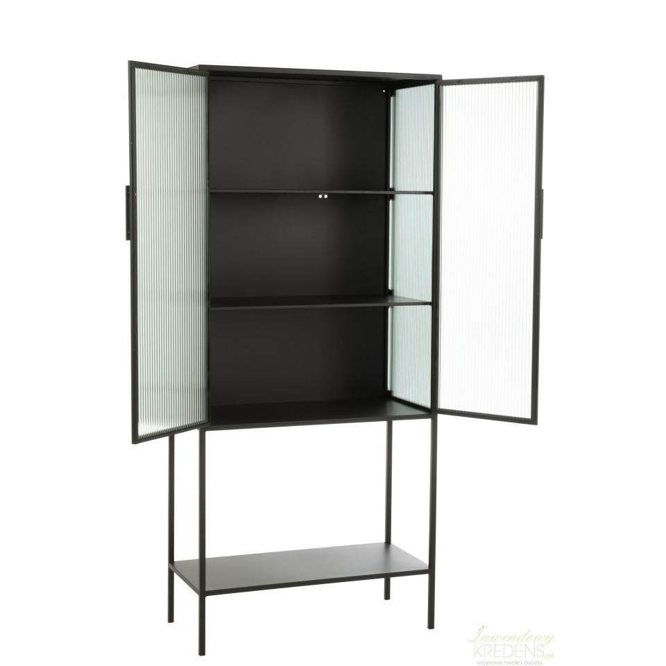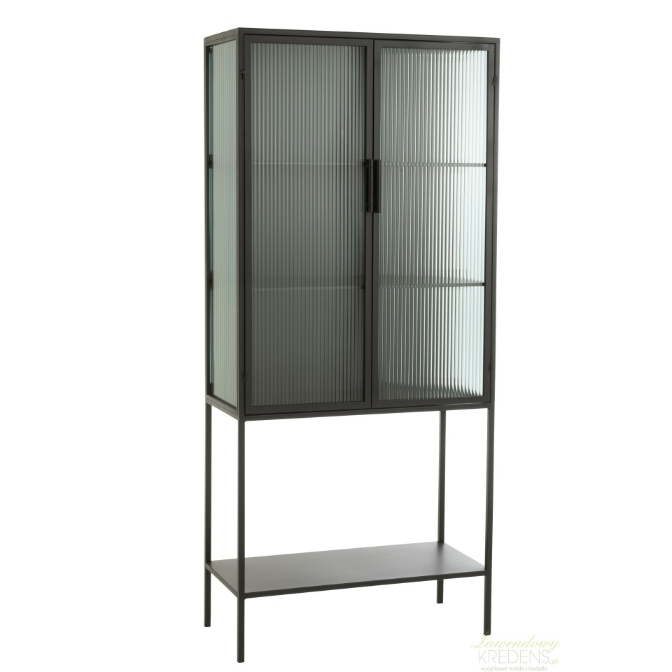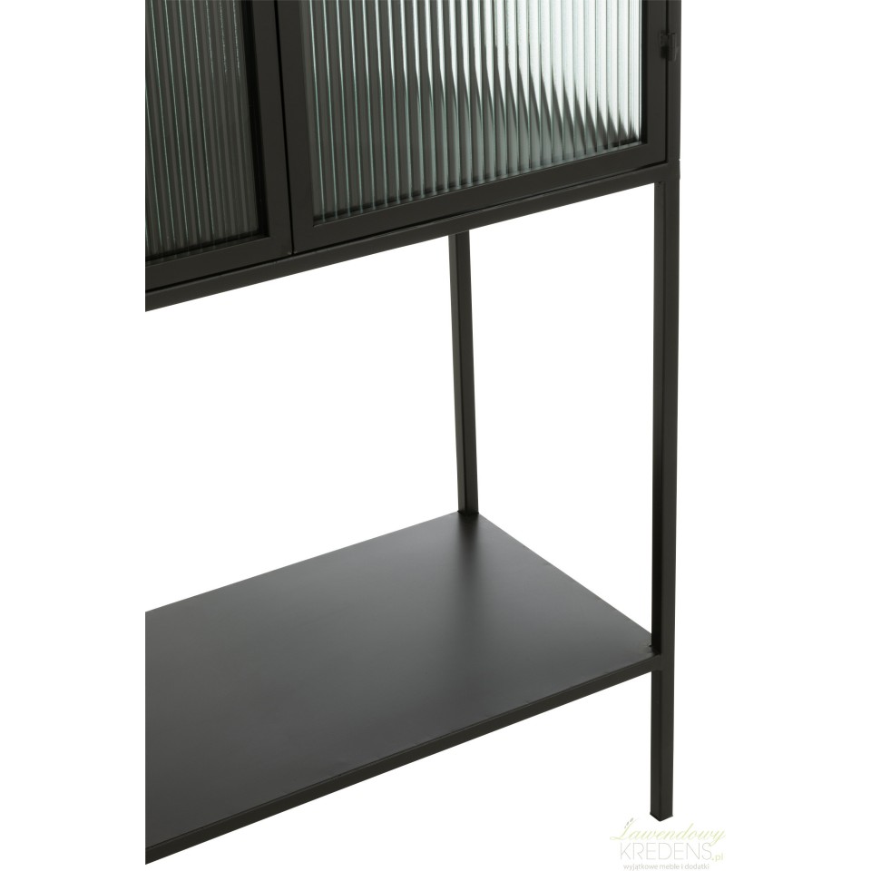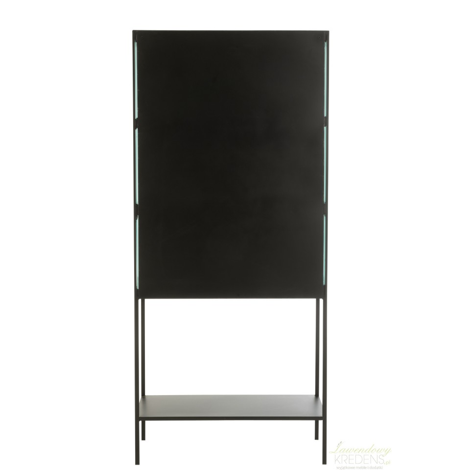 Witryna industrialna Vetro J-Line wykonana ze szkła i czarnego metalu to minimalistyczny mebel we współczesnym stylu.