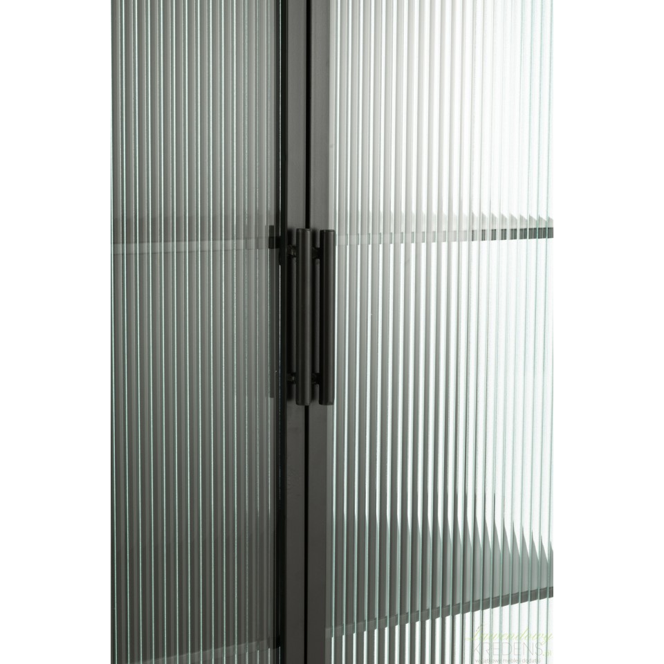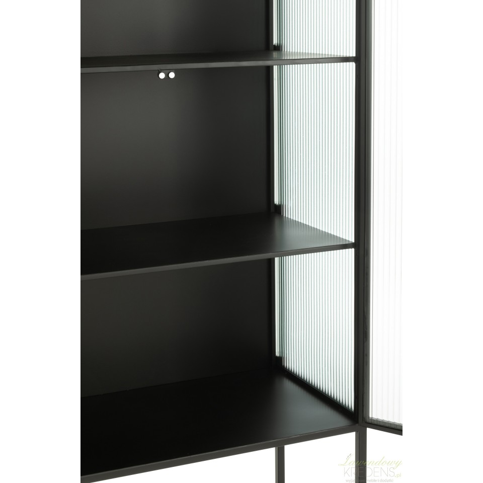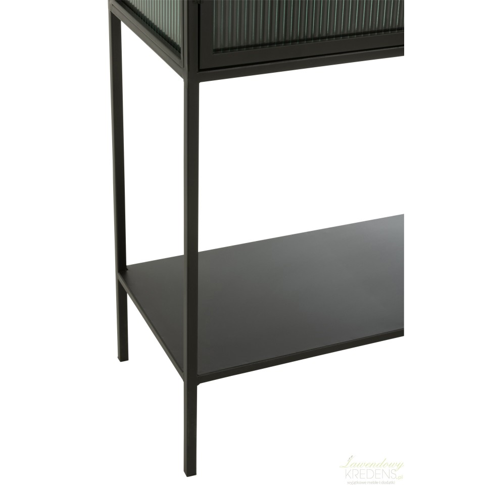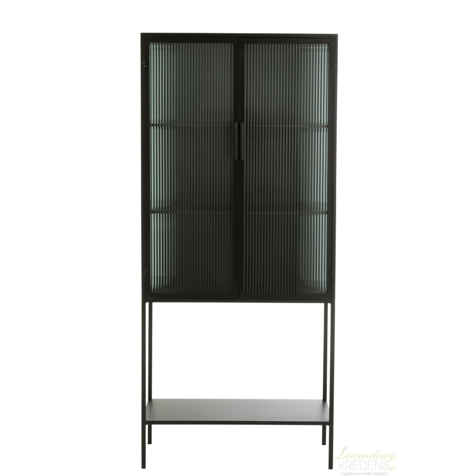 Witryna industrialna Vetro J-Line wykonana ze szkła i czarnego metalu to minimalistyczny mebel we współczesnym stylu.