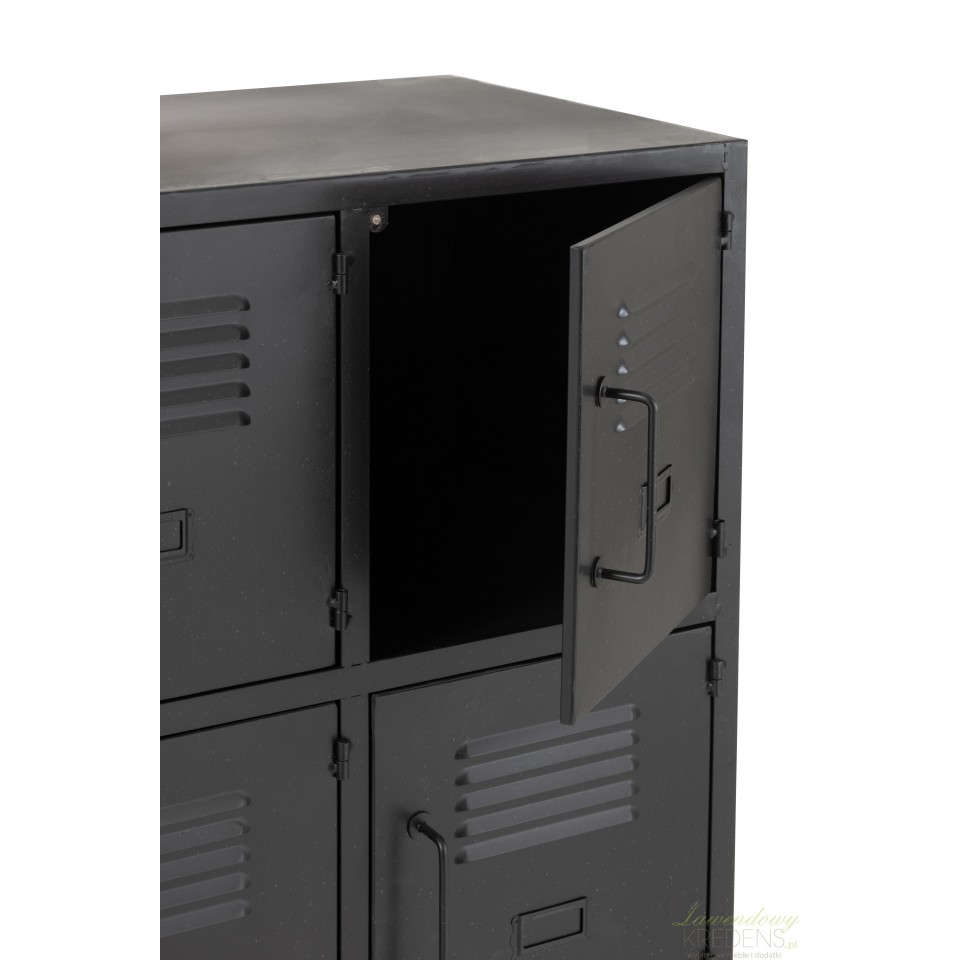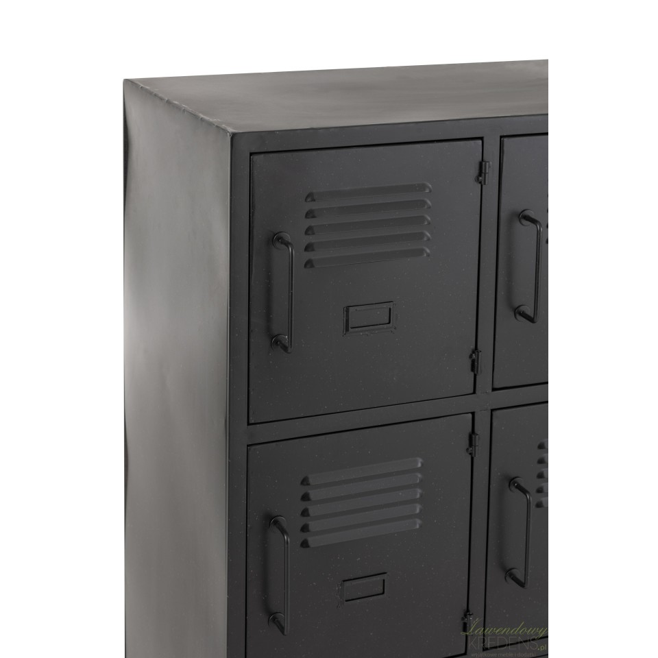 Metalowa komoda industrialna czarna J-Line to doskonały sposób do wprowadzeniu odrobiny funkcjonalności dzięki licznym i sprytnym schowkom.
