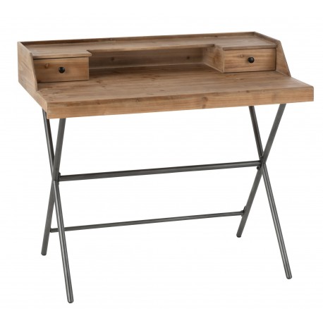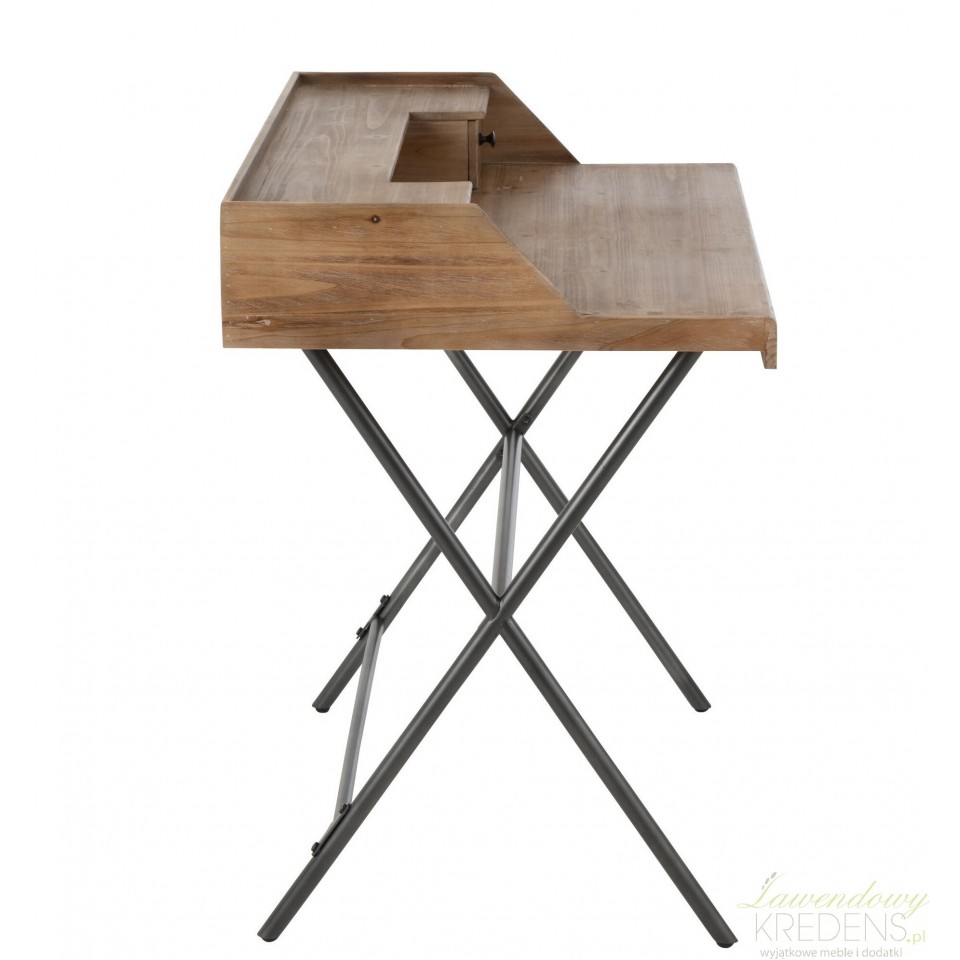 Przestronne biurko Loft J-Line jest pełne charakteru. Posiada prostokątny blat z drewna który osadzony jest na metalowych nogach.