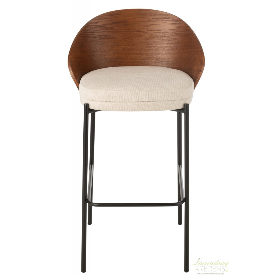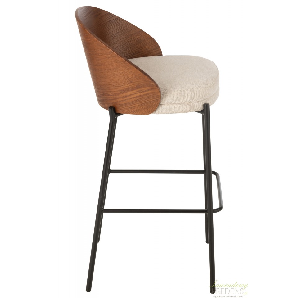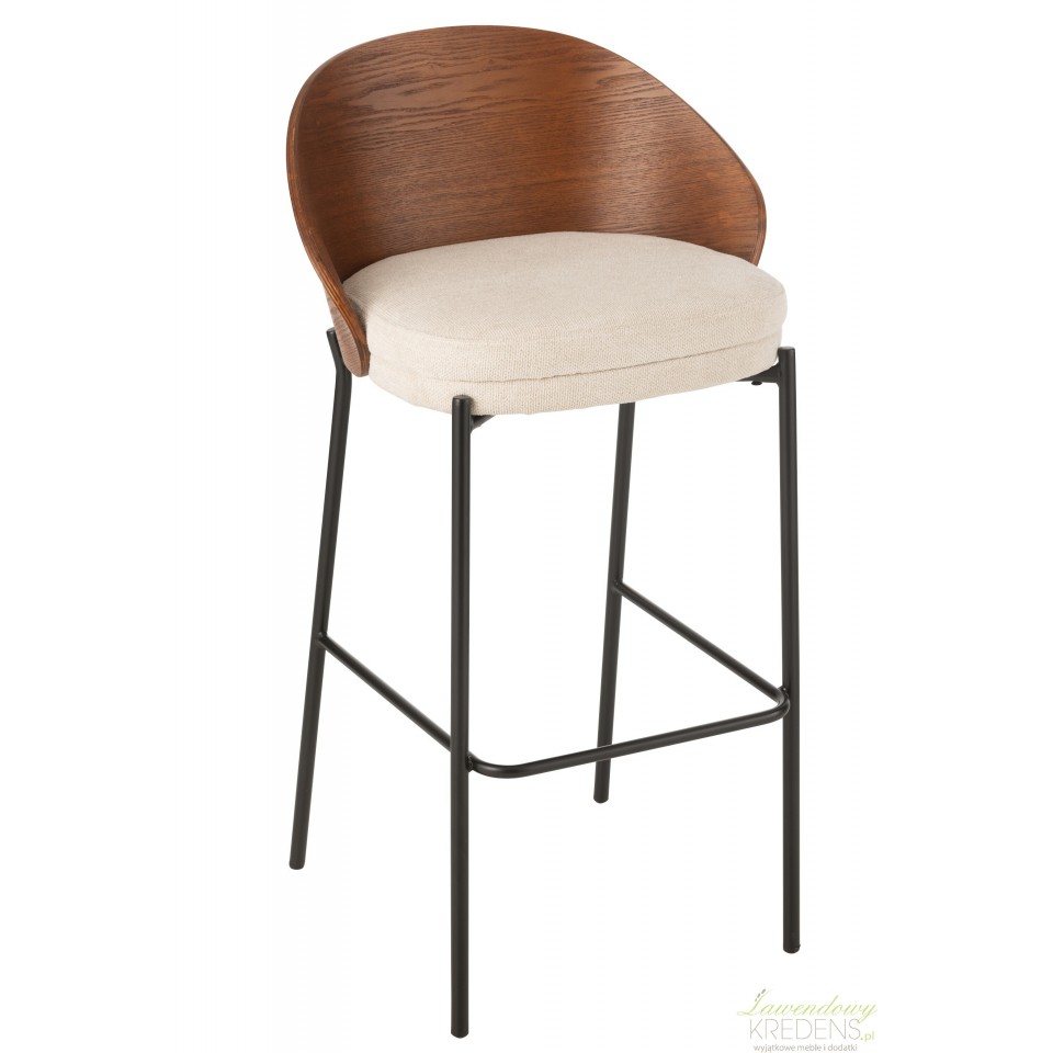 Stołek barowy na metalowych, czarnych nogach doskonale sprawdzi się przy wyspie kuchennej, albo ustawiony przy blacie. Meble z drewna z serii Japandi to nituzinkowe, praktyczne i dekoracyjne wyposażenie do wnętrz. Zapraszamy.