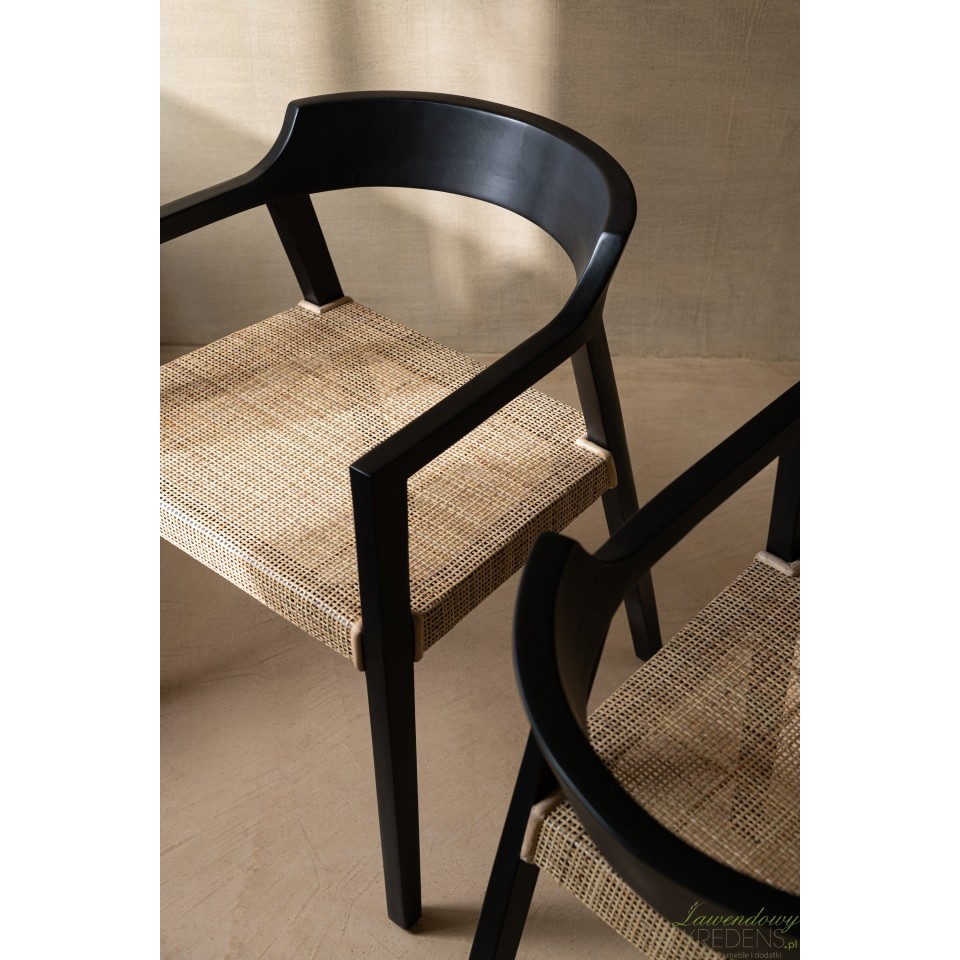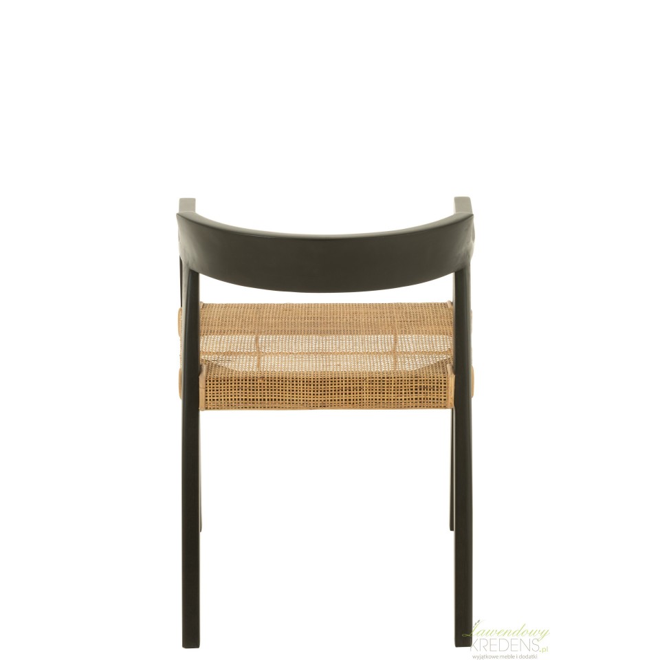 Czarne drewniane krzesło z brązowym siedziskiem to stylowe połączenie klasyki i nowoczesności. Jego kontrastowe wykończenie wprowadza elegancję i ciepło, sprawdzając się zarówno w jadalni, jak i w biurze.