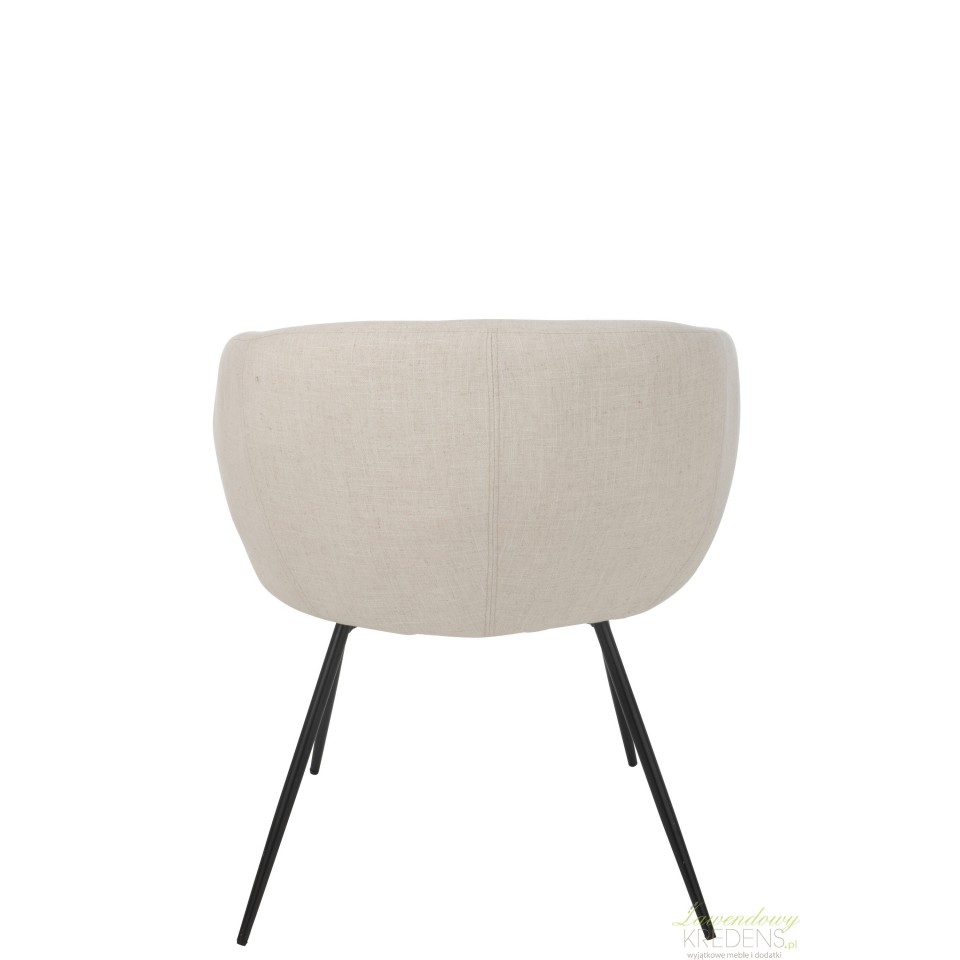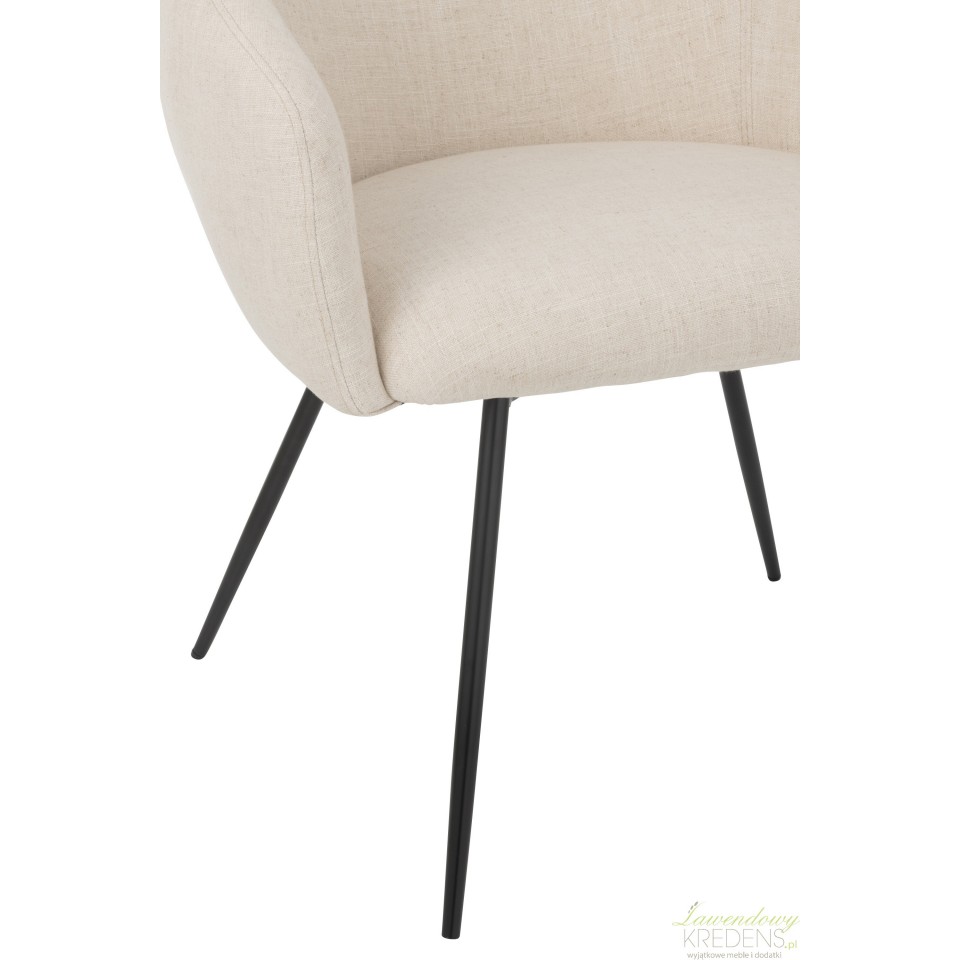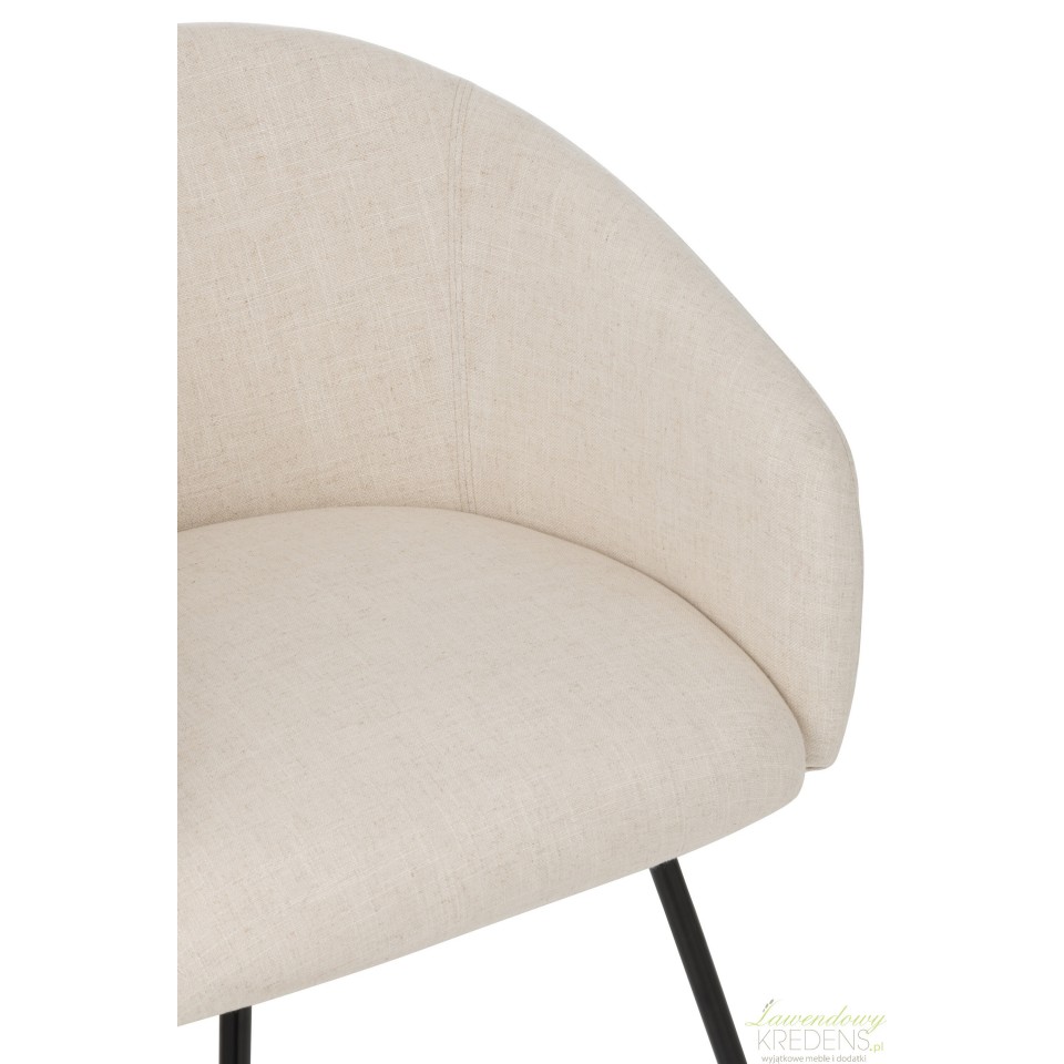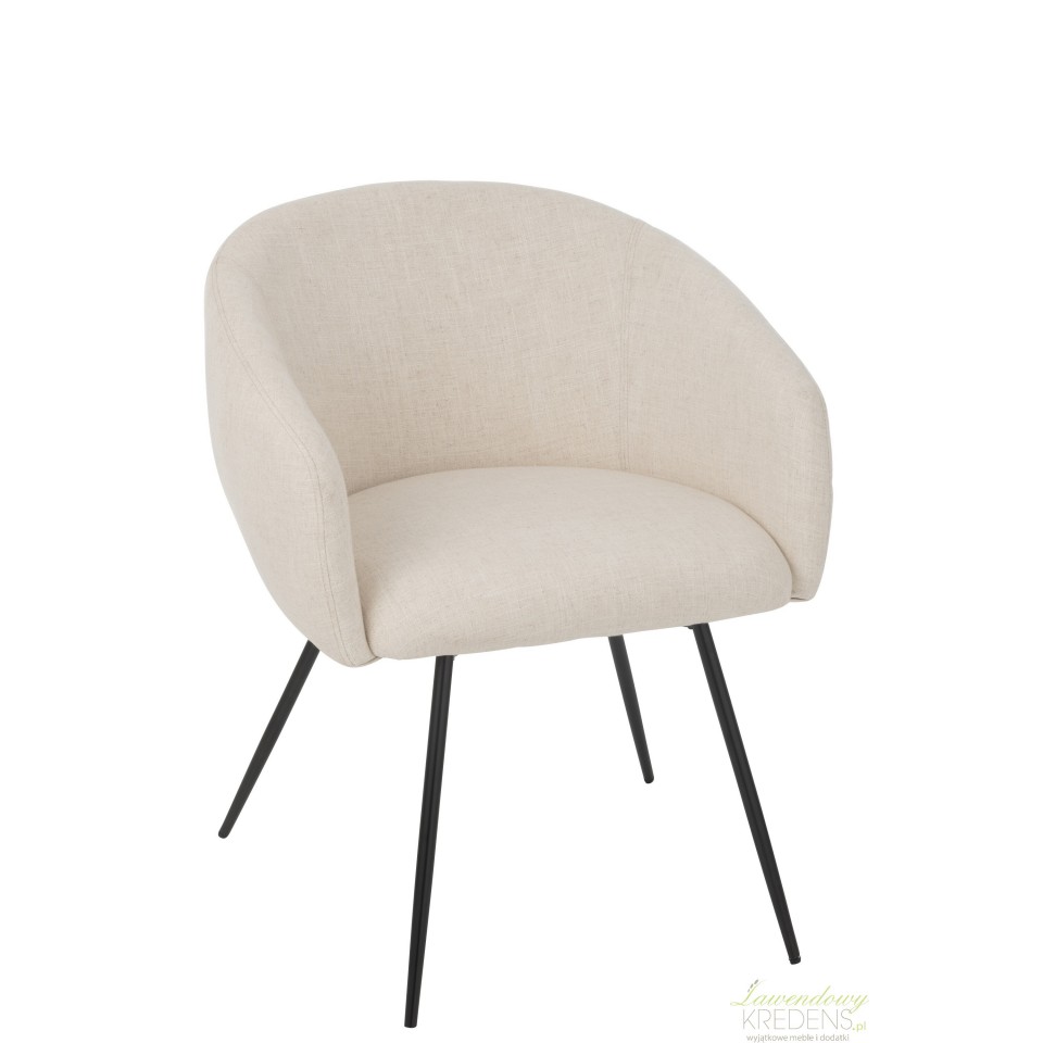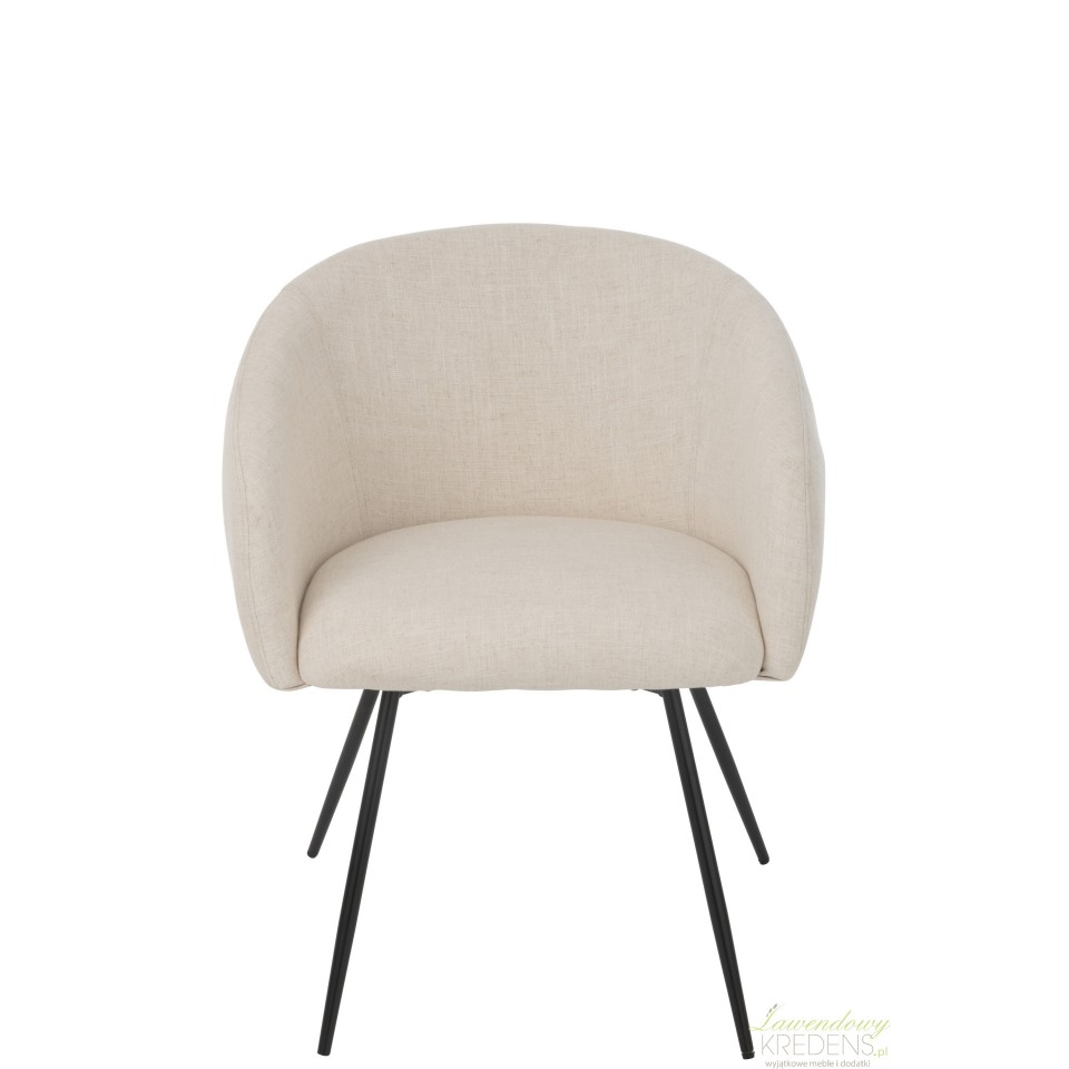 Krzesło tapicerowane w kolorze kremowym z miękkim siedziskiem i oparciem, mające cztery, czarne nogi. Niezwykle eleganckie meble J-Line, dopasują się do każdego wnętrza.