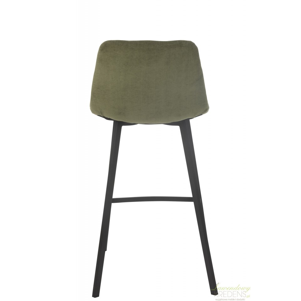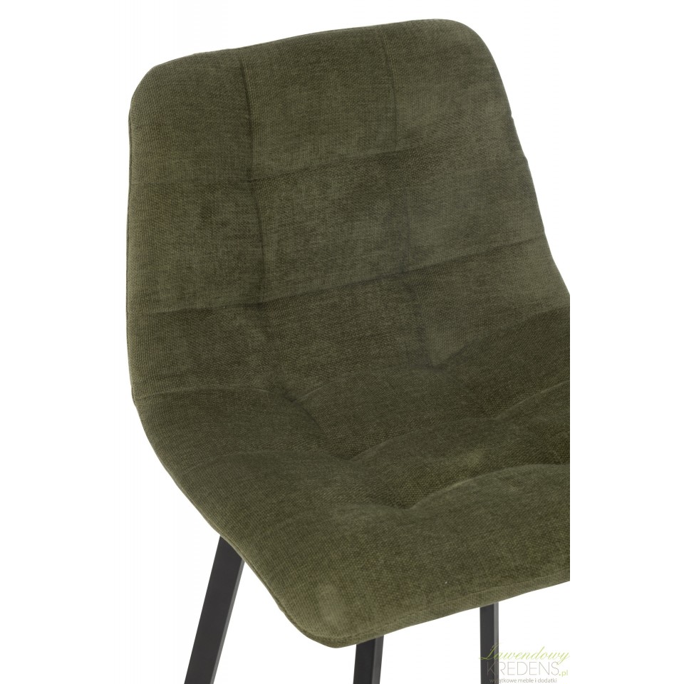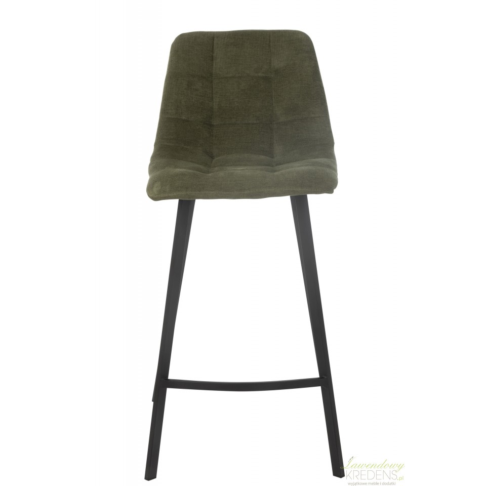 Krzesło barowe J-line z siedziskiem na wysokości 69 cm. Jego zielona tapicerka w połączeniu z metalowymi nogami w czarnym kolorze idealnie wpasuje się do większości stylów wykończenia wnętrza.