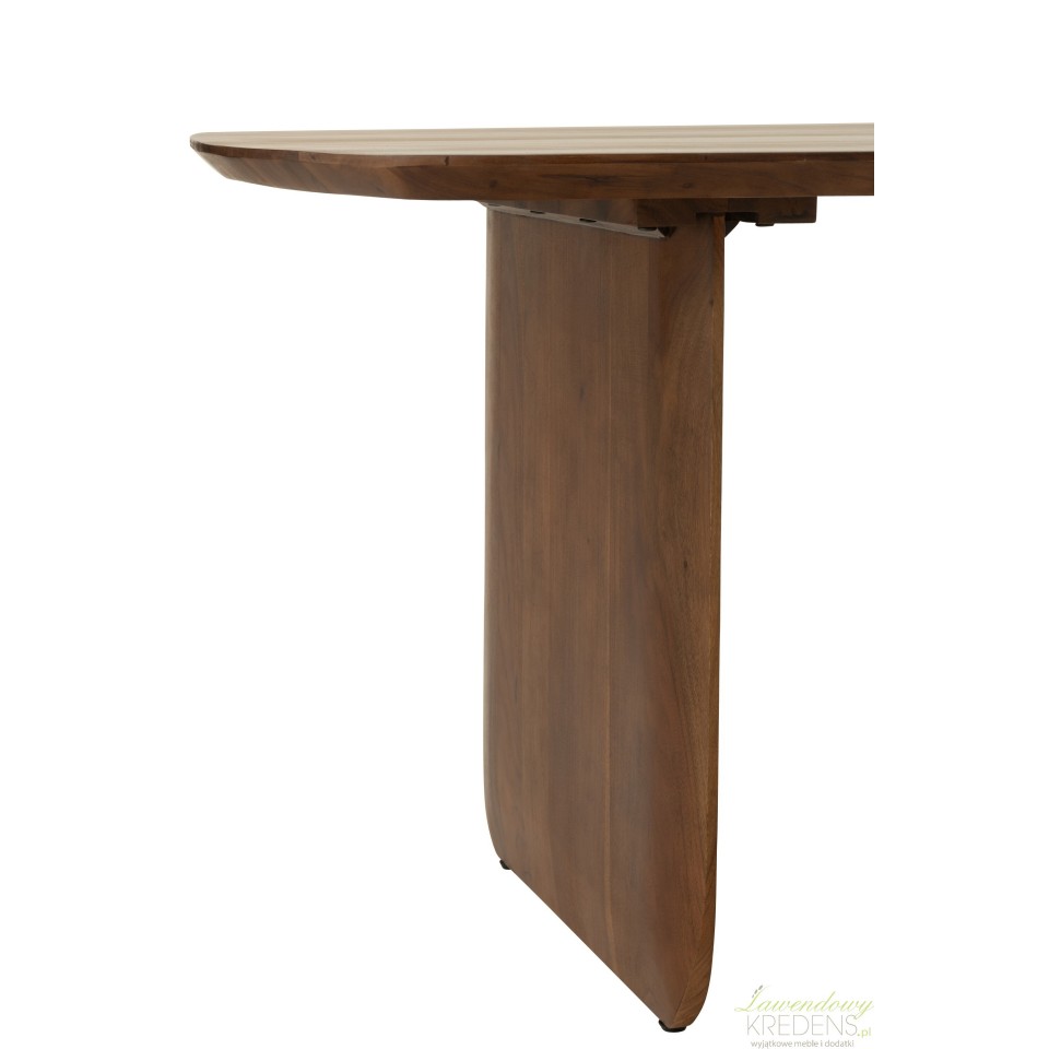 Stół Japandi J-Line to kwintesencja spokojnej elegancji. Wykonany z litego drewna akacjowego, zachwyca płynną linią i naturalnym rysunkiem słojów. Masywne nogi o łagodnie zaokrąglonym kształcie oraz subtelnie wyprofilowany blat tworzą projekt, w którym prostota spotyka się z wyrafinowanym rzemiosłem. To mebel, który wnosi do wnętrza równowagę, ciepło i naturalny rytm.