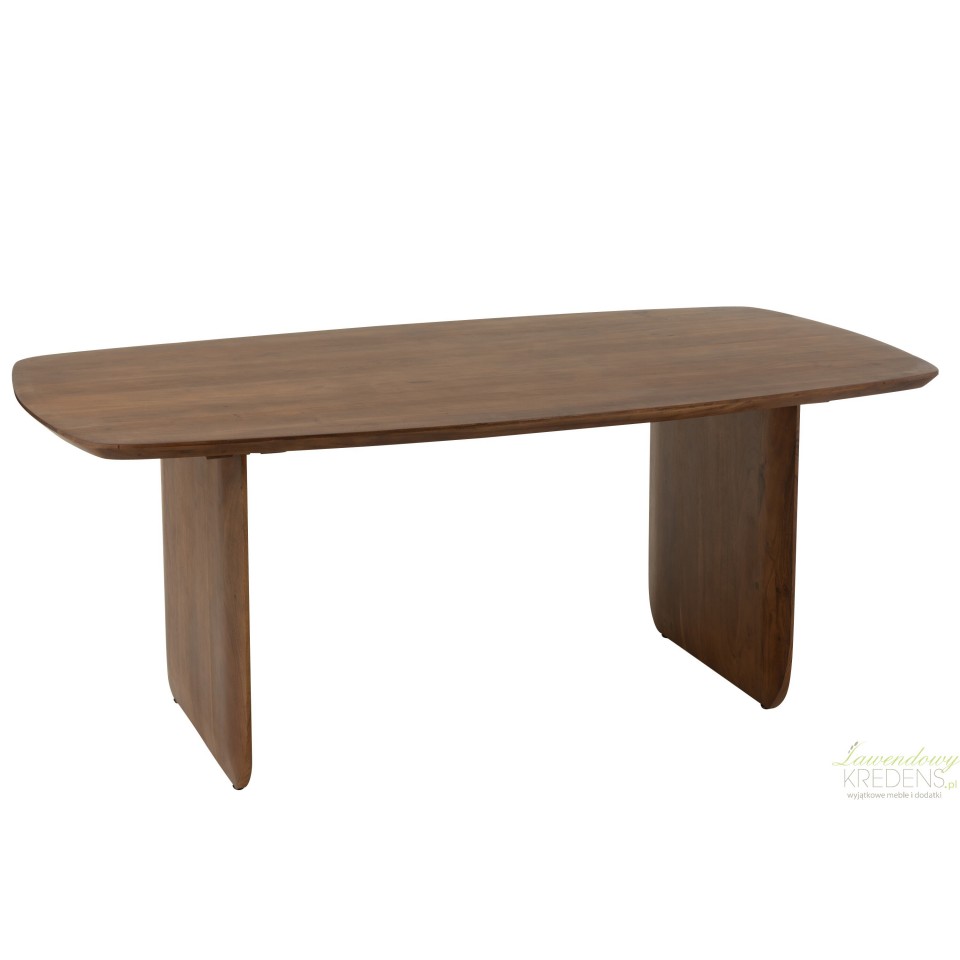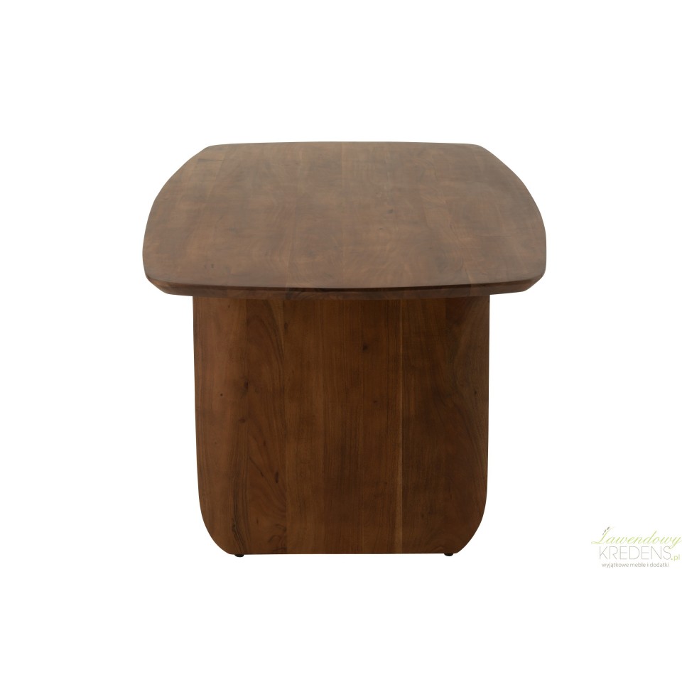 Stół Japandi J-Line łączy naturalność drewna akacjowego z nowoczesną prostotą. Zaokrąglone krawędzie i masywne nogi o miękkiej linii tworzą harmonijną całość, która wprowadza do wnętrza spokój i równowagę. Idealny do jadalni inspirowanych stylem japandi lub rustykalnym minimalizmem.