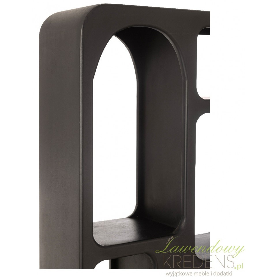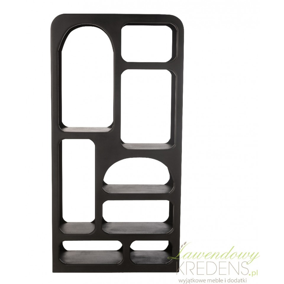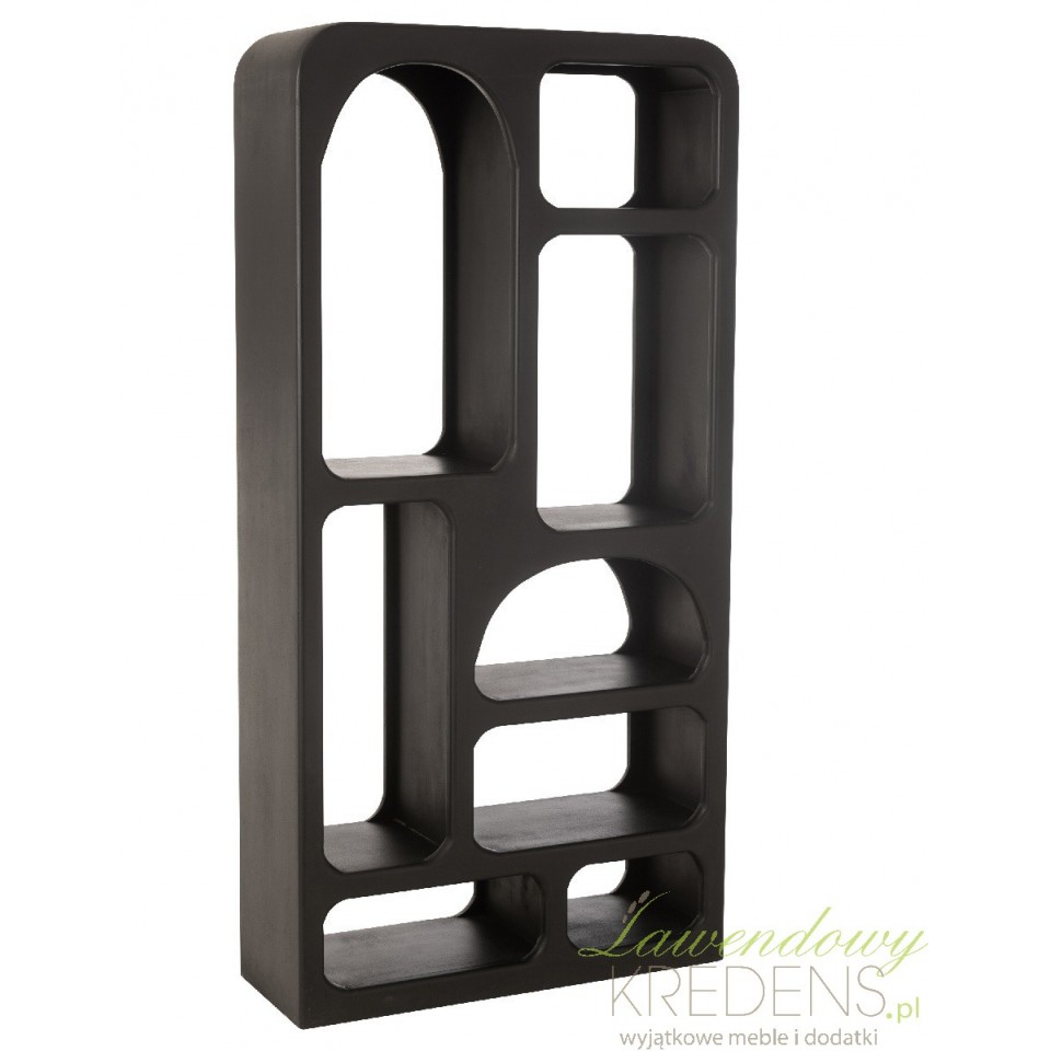 Regał Japandi Akacja Czarny A J-Line łączy prostotę japońskiego minimalizmu z naturalnym ciepłem rustykalnego drewna mango. Geometryczne półki o zaokrąglonych krawędziach tworzą artystyczną kompozycję, idealną do ekspozycji dekoracji, książek lub ceramiki. To designerski mebel o rzeźbiarskim charakterze.
