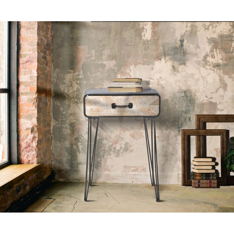 Drewno i metal to ponadczasowy duet aranżacyjny, który w wydaniu stolika z szufladką wygląda fascynująco. Stolik industrialny o wysokości ponad 65 centymetrów ustaw w sypialni obok łóżka, w przedpokoju lub w salonie. Bielona szuflada z wzorem dodaje mu subtelności, z kolei metalowe nogi sprawiają, że stolik wygląda solidnie. Meble industrialne od Mauro Ferretti to niezliczone korzyści dla współczesnych wnętrz!