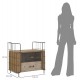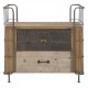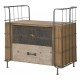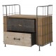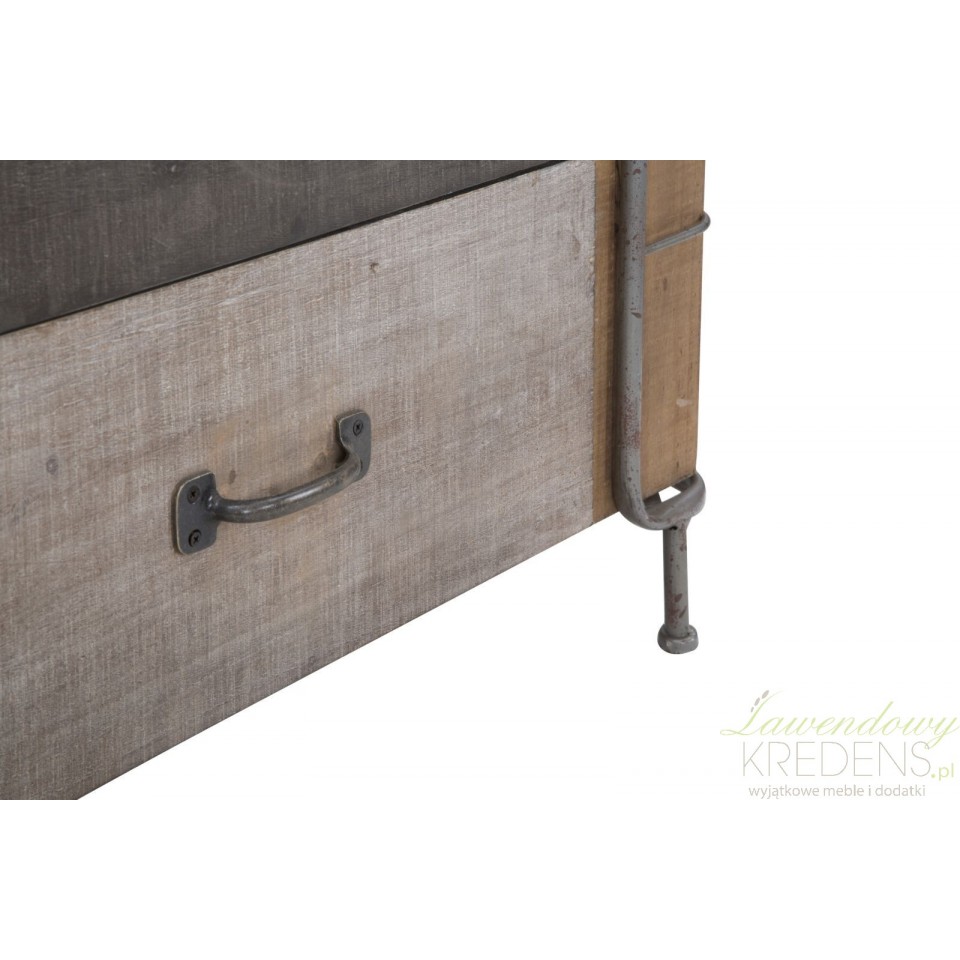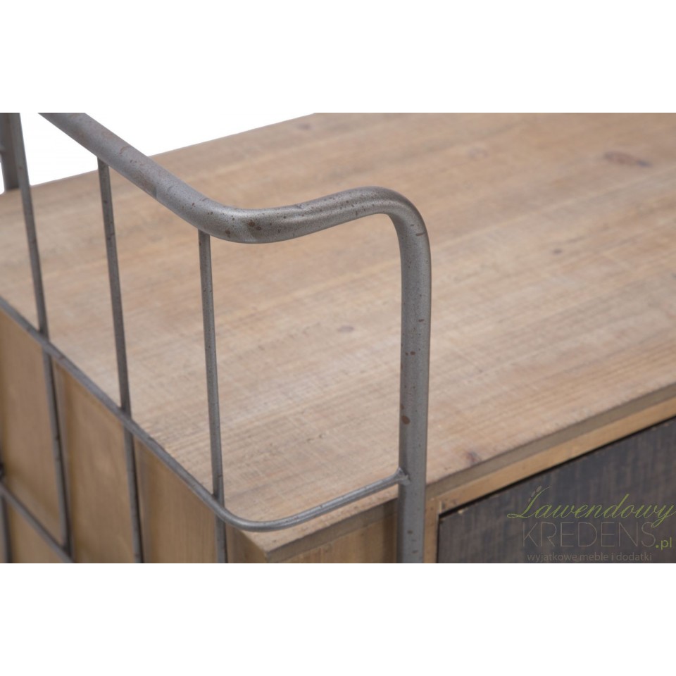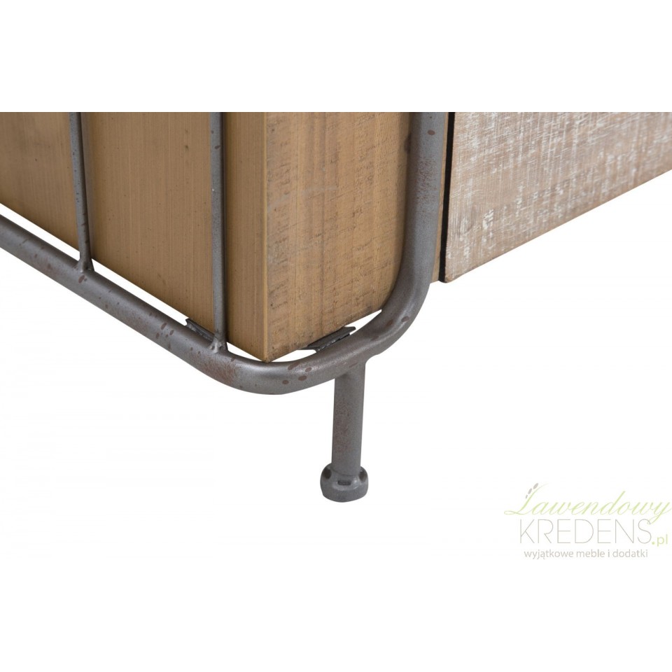 Prezentowana szafka loft jest wzmocniona metalową kratką po bokach, posiada również krótkie, metalowe nogi oraz dwa różne od siebie, metalowe uchwyty. Jej fenomen wynika z połączenia różnych materiałów, kształtów i kolorów. Zastosowanie drewna do zbudowania korpusu mebla zapewnia mu naturalny design i inne wartości, które docenią praktyczne osoby, poszukujące mebli o ponadprzeciętnej trwałości. Nie ograniczaj się do jednego stylu i wybierz meble loft do swojego domu, nawet jeśli to mają być pierwsze elementy wyposażenia wnętrza tego typu!