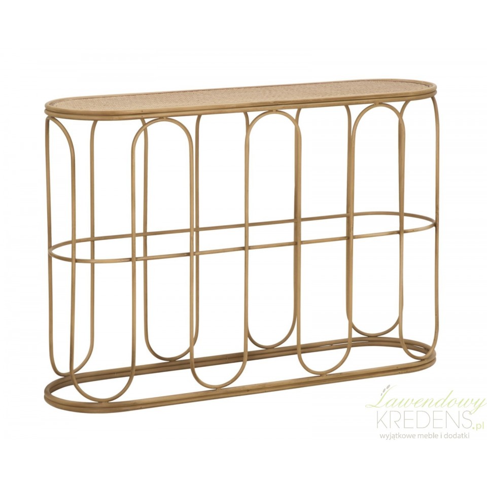Owalny blat konsoli został mistrzowsko tkany z rattanowych włókien, co nadaje mu wyjątkowej lekkości i subtelności. To piękne wykończenie tworzy efektowny wzór, który przyciąga wzrok i nadaje konsoli unikalny charakter. Blat jest nie tylko funkcjonalny, ale również stanowi artystyczne dzieło, które dodaje wnętrzu niepowtarzalnego stylu.