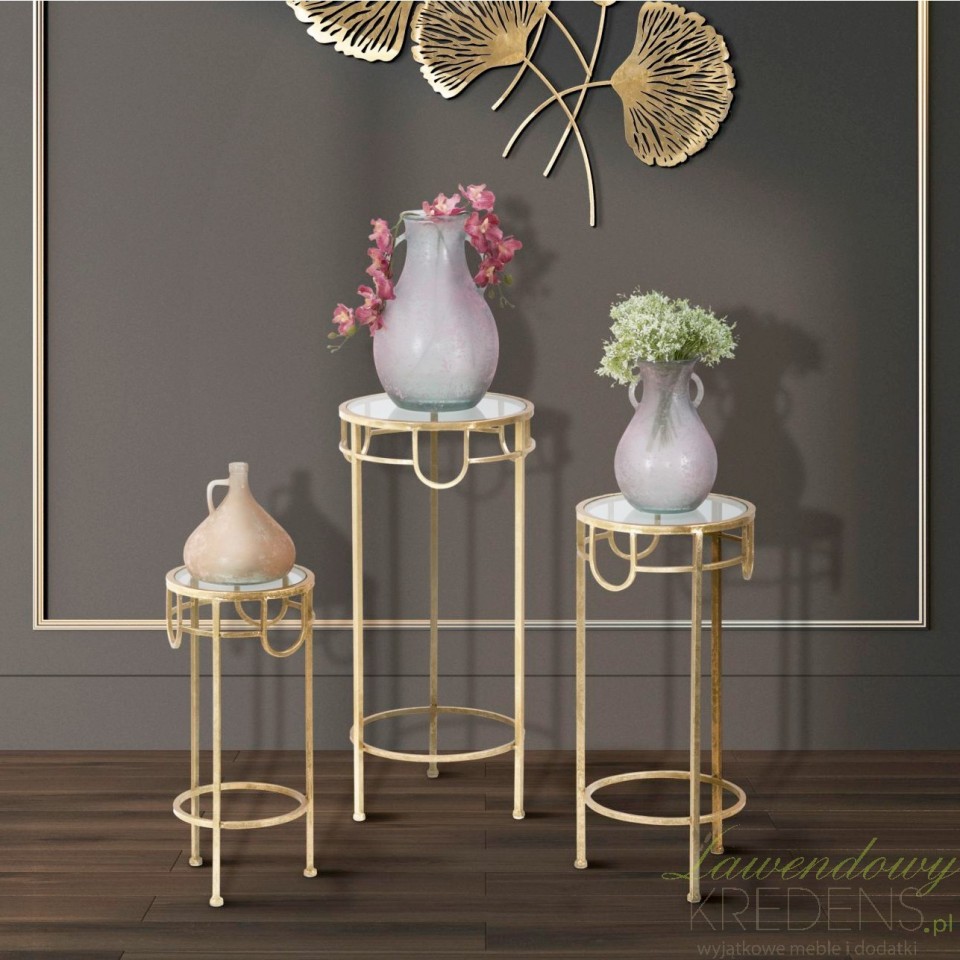 Nasze złote stoliki są również doskonałymi kwietnikami, które pozwolą Ci eksponować Twoje ulubione rośliny w najpiękniejszy sposób. Delikatne złociste wykończenie i przezroczyste blaty szklane pozwolą kwiatom błyszczeć w pełnej krasie, tworząc efektowne i stylowe dekoracje roślinne.