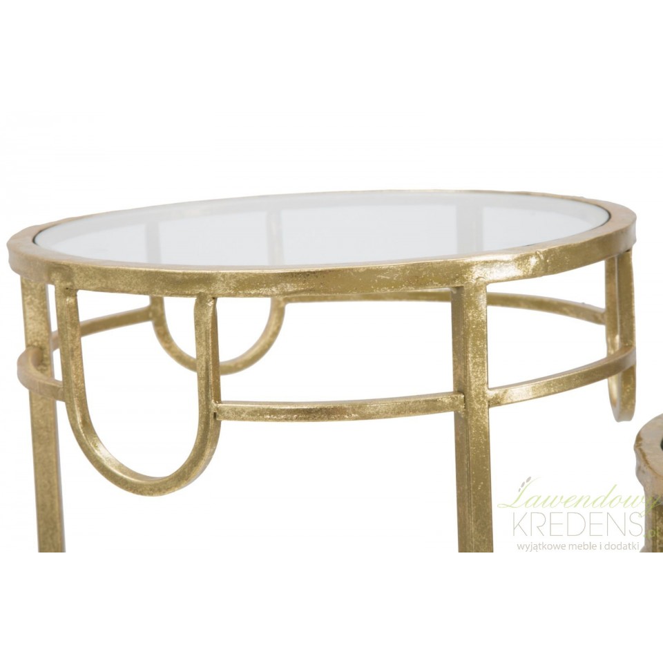 Złote wykończenie stolików dodaje im wytworności i elegancji, a zarazem doskonale współgra z różnorodnymi stylami aranżacji wnętrz. Ich subtelne, złote akcenty przyciągają wzrok i stanowią piękne kontrapunkty dla przezroczystych, szklanych blatów.