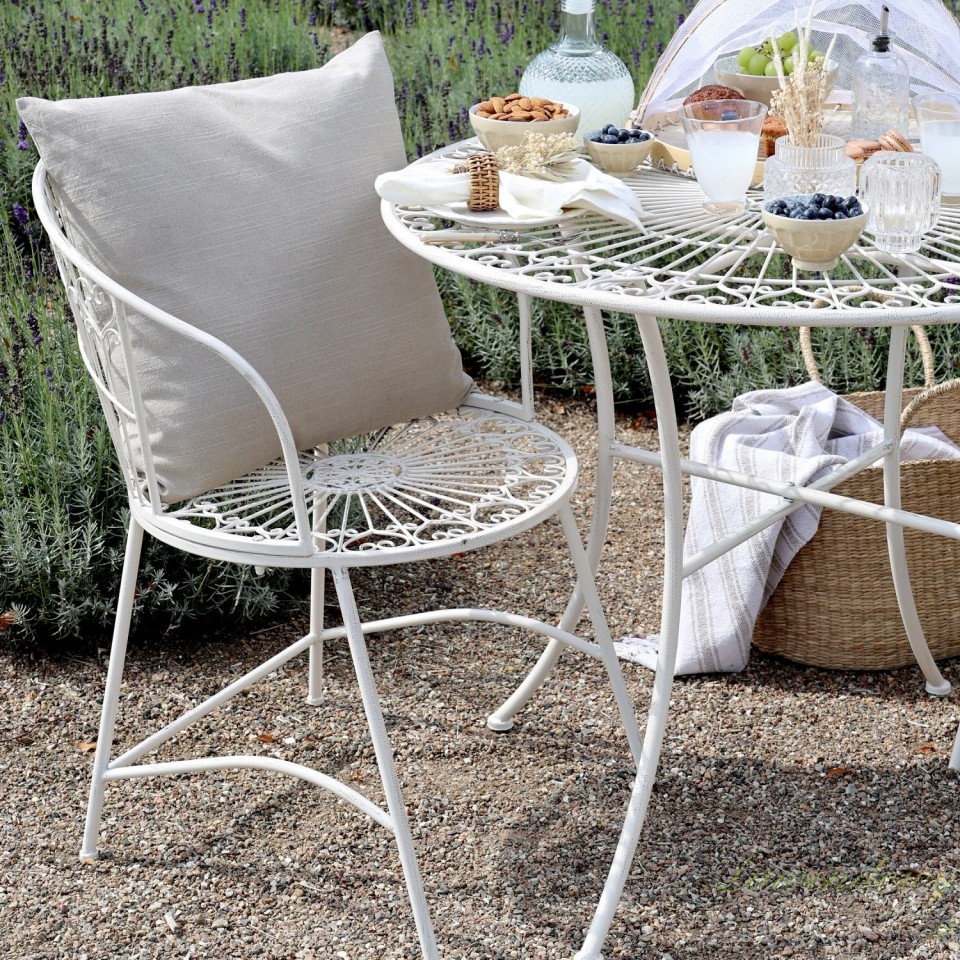 Designerskie, metalowe krzesło prowansalskie Bistro to prawdziwy klasyk wśród krzeseł od duńskiej marki Chic Antique. Sprawdzi się doskonale jako krzesło na taras lub do ogrodu. Zachwyca przepięknie wykonanym, ażurowym siedziskiem i zaokrąglonym oparciem. Filigranowe wzornictwo i solidne wykonanie krzesła w stylu prowansalskim sprawiają, że dzięki nim każde miejsce staje się w mgnieniu oka bardziej romantyczne i piękniejsze. Jeśli chciałby urządzić tego lata wymarzony ogród – już dzisiaj zamów metalowe meble prowansalskie!